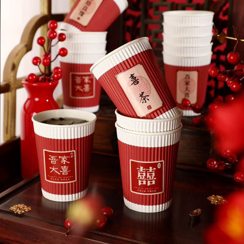 Свадебные товары Daquan свадебный банкет одноразовый кубок с писанием дома свадебная чашка водяной чашки красная бумага чашка чаша