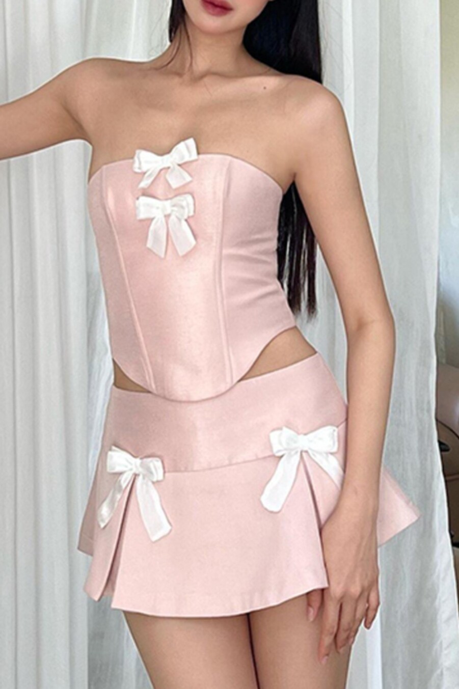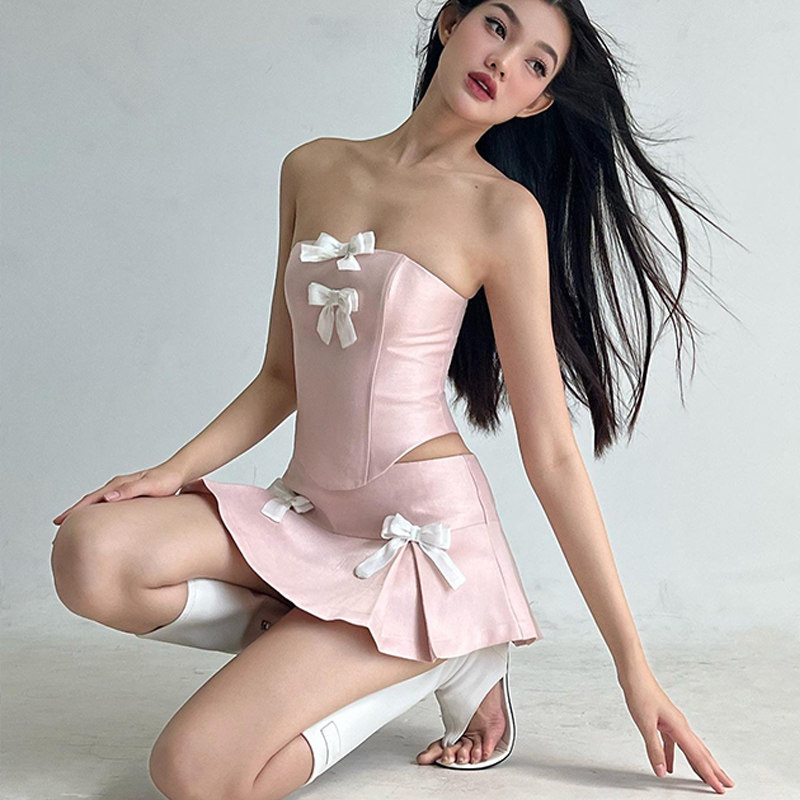 Корсет с бантиком, сексуальный бюстгальтер-топ, юбка, комплект, французский стиль