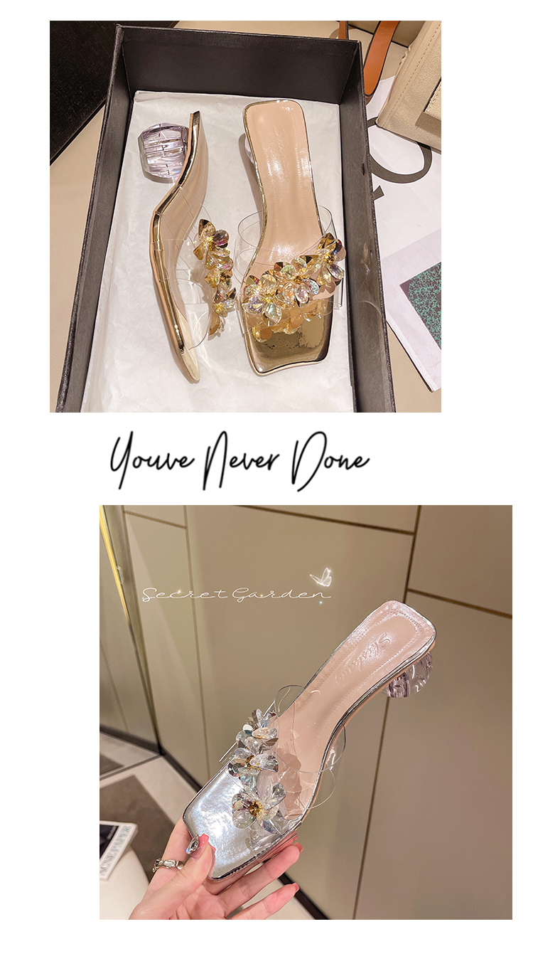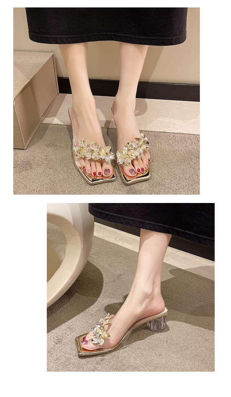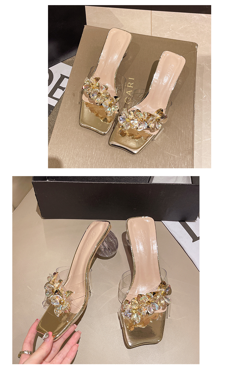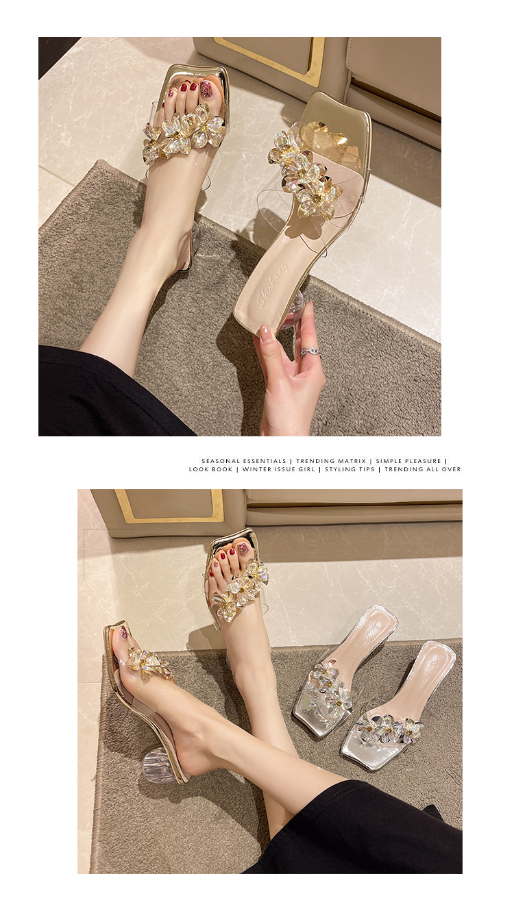 Тапочки, модная обувь, туфли на высоком каблуке, сандалии, слайдеры, французский стиль, в цветочек, изысканный стиль