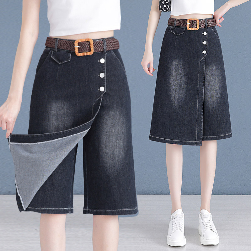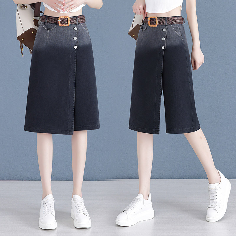 Джинсовые летние штаны, тонкая юбка, леггинсы, коллекция 2023, градиент, свободный крой, А-силуэт