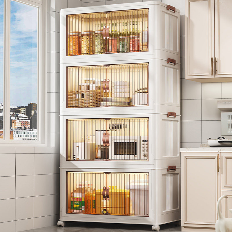 Кухонная полка помещается на пол многослойной с дверью.