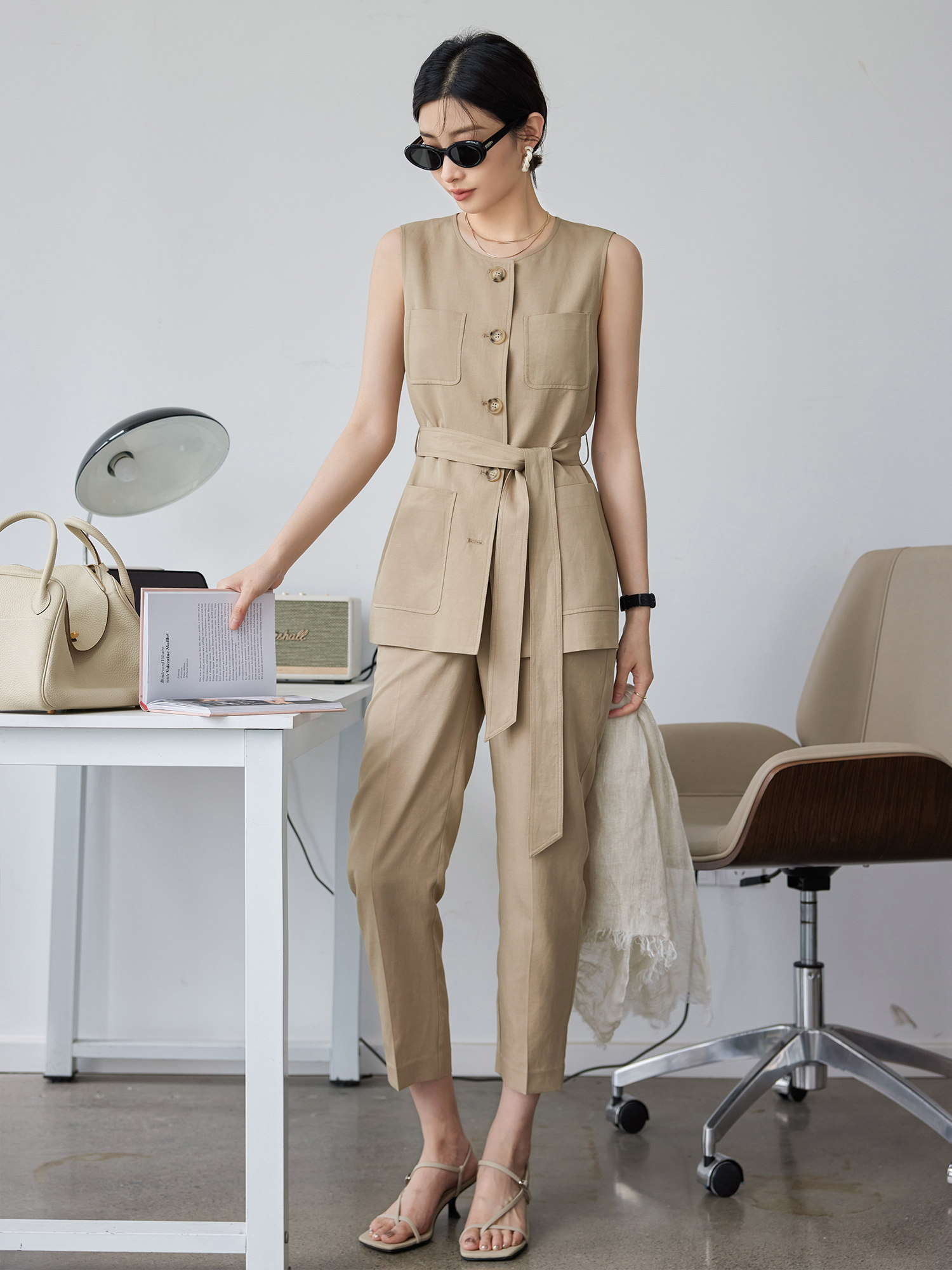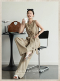 [南瓜谷【电影时装套装】质感天丝麻马甲外套/烟管裤/阔腿裤W0364]