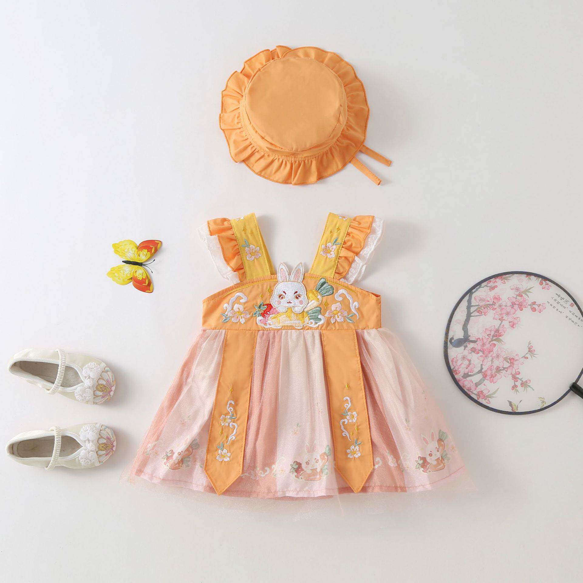 2023 Лето новое детское боди, детская полная луна Ханфу Чистая Котт