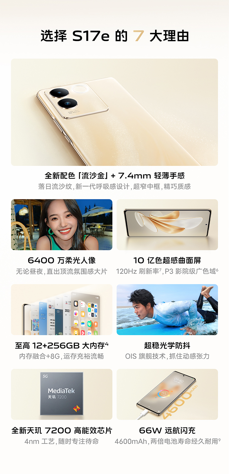 [Реальное учреждение 500 Юань] Vivo S17E New 5G Smart Camera Mobile Phone Mobile Mobile Flag Vivos16 New Vivo Официальный флагманский магазин подлинный подлинные продукты
