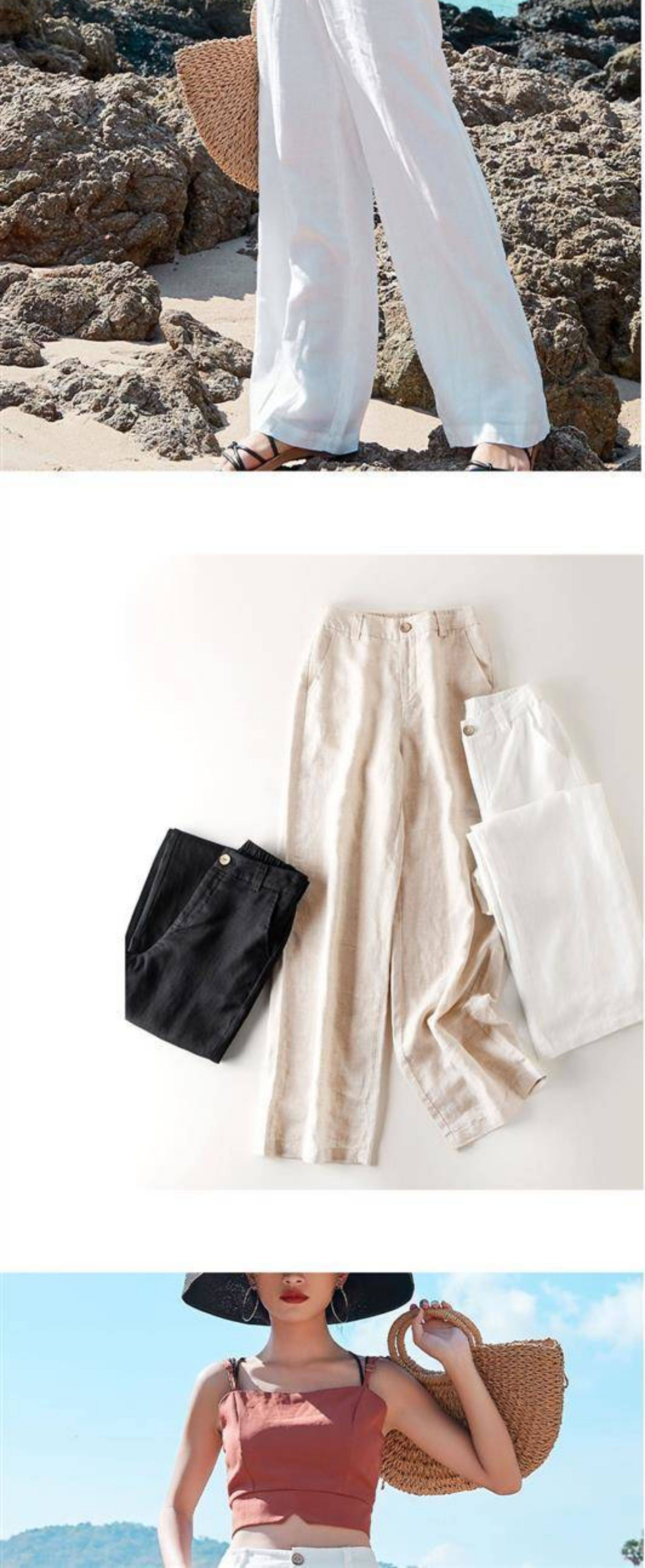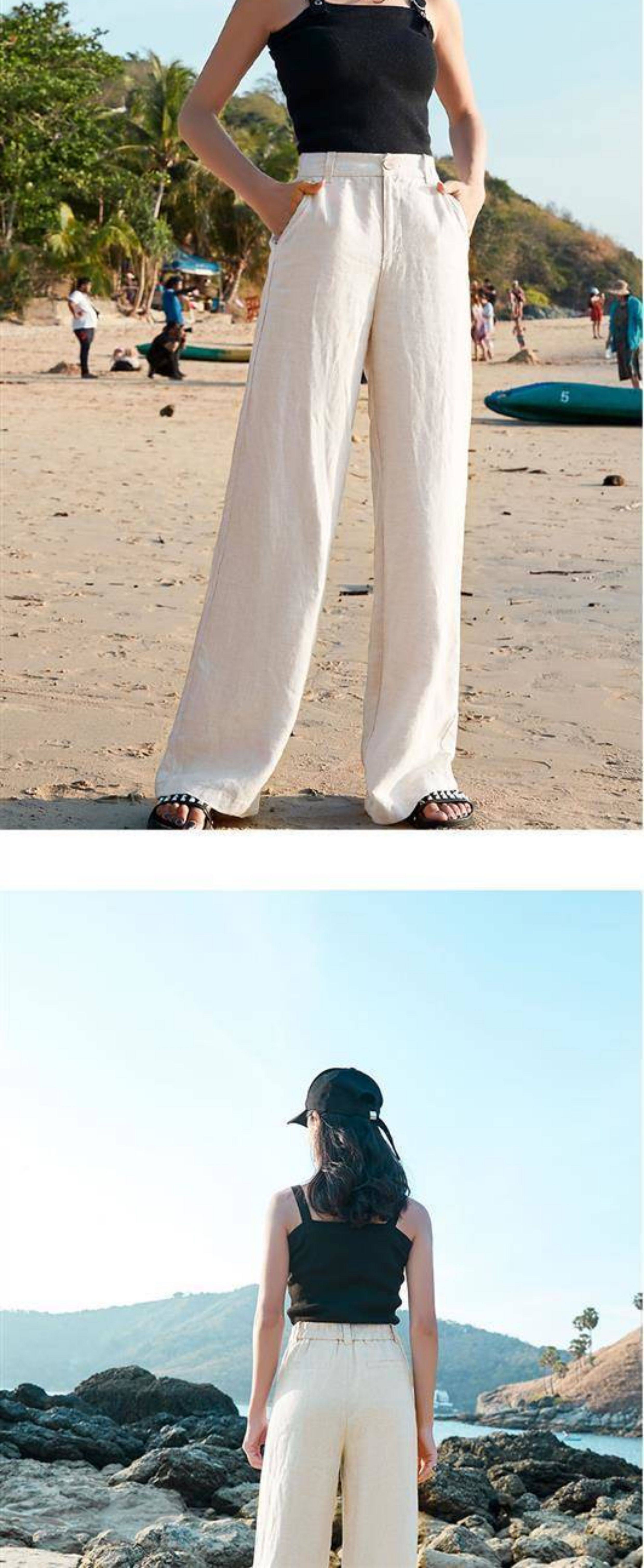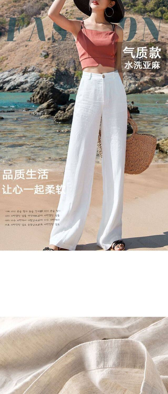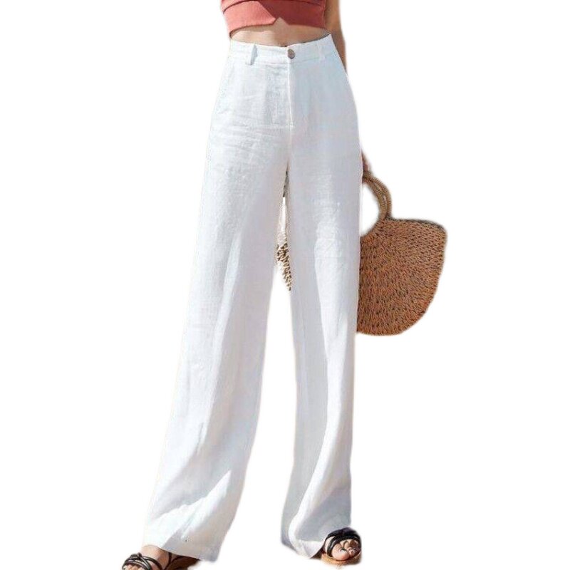 Тонкие штаны для отдыха, из хлопка и льна, в корейском стиле, высокая талия