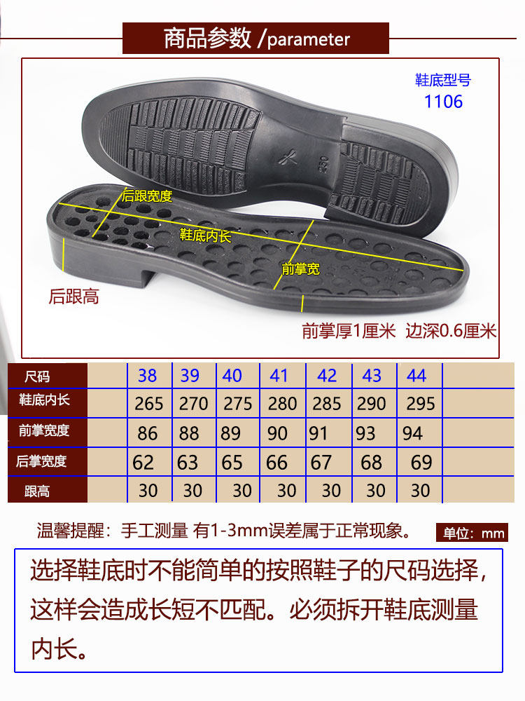 Мужские полиуретановые подошвы круглых голов круглой головы, не сопряженной на липкая кожаная ботинка, для ремонтного материала 1106