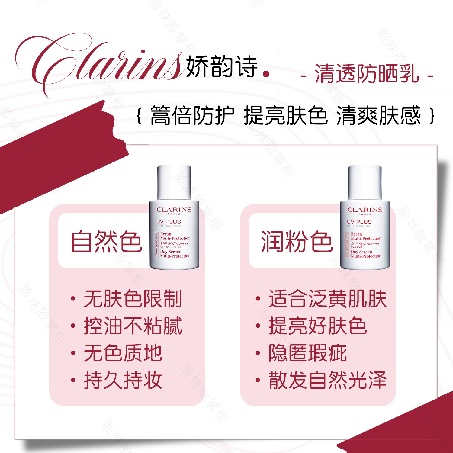 同时 Поток солнцезащитного крема также против длинной и короткой двойной ущипывания.