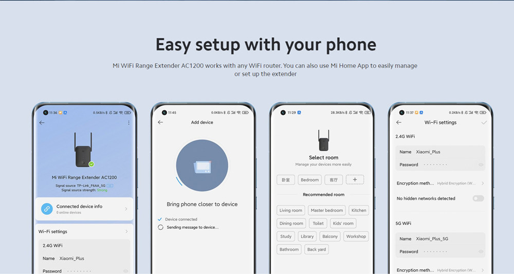 Mi Wifi Range Extender позволяет увеличить и улучшить существующий сигнал Wi-Fi. 2. Двухдиапазонные частоты 5 ГГц и 5 ГГц достигают общей скорости до 1200 Мбит/с, эффективно устраняя мертвые зоны Wi-Fi.