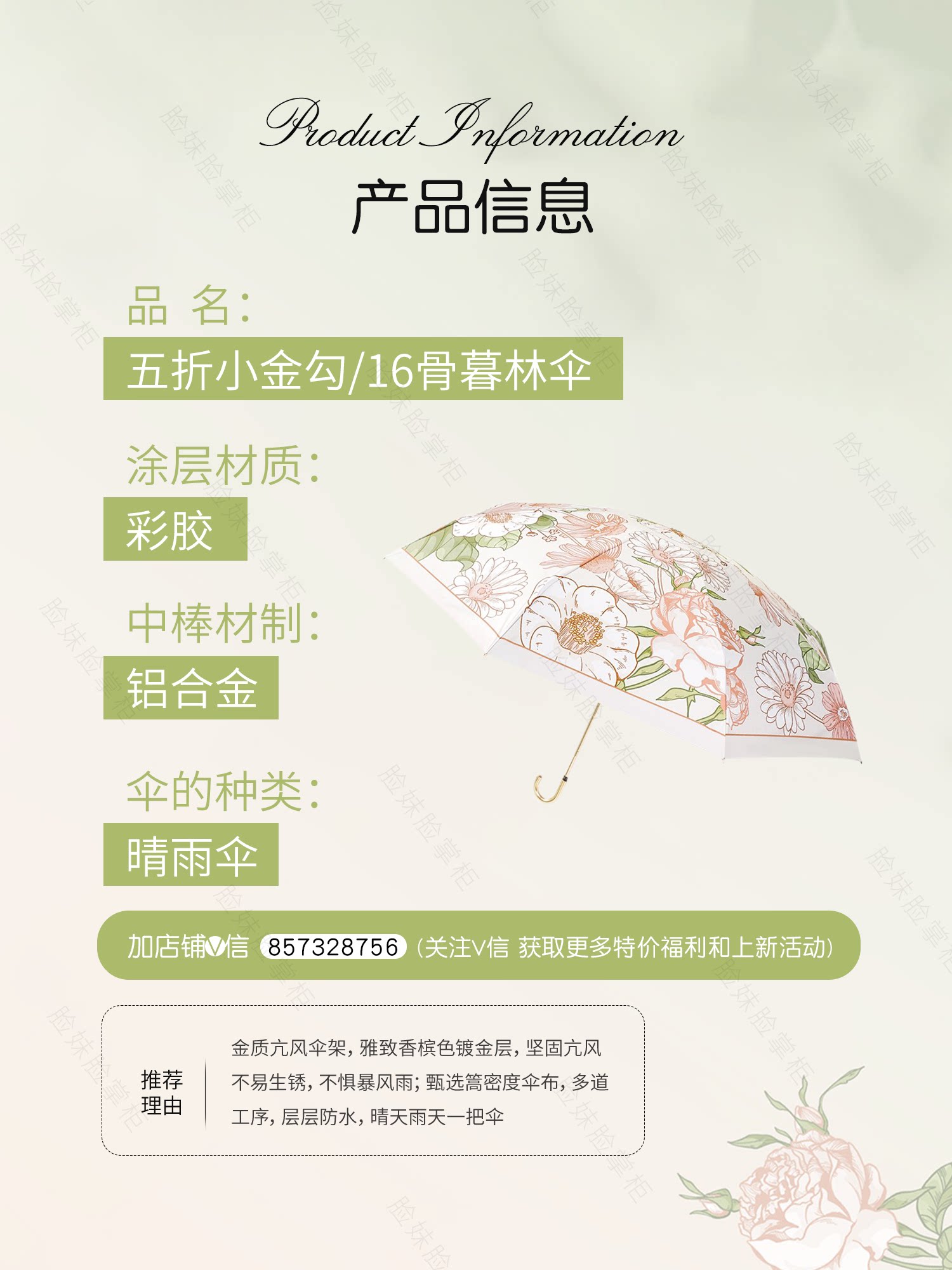 | форма | Сорок -аут цветовой зонтик/50 % скидка с небольшим золотым крюком |