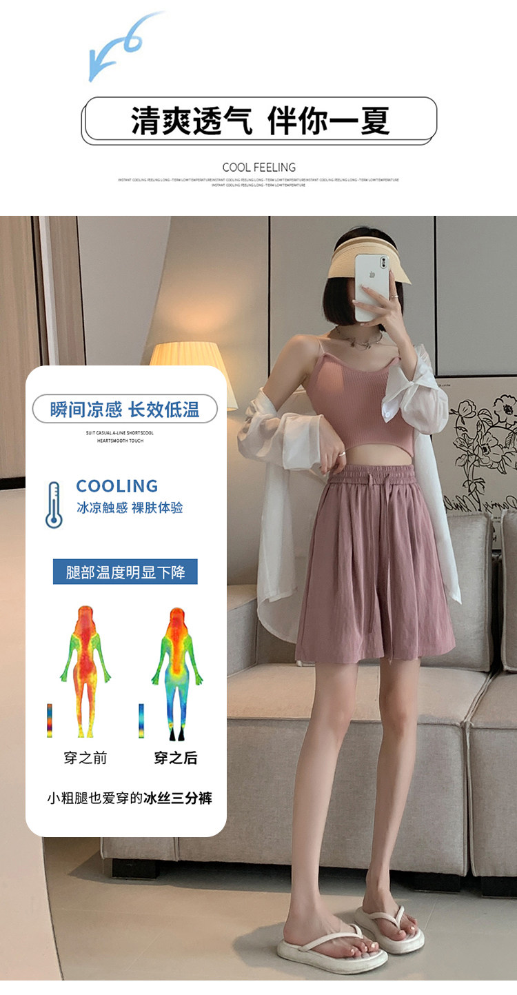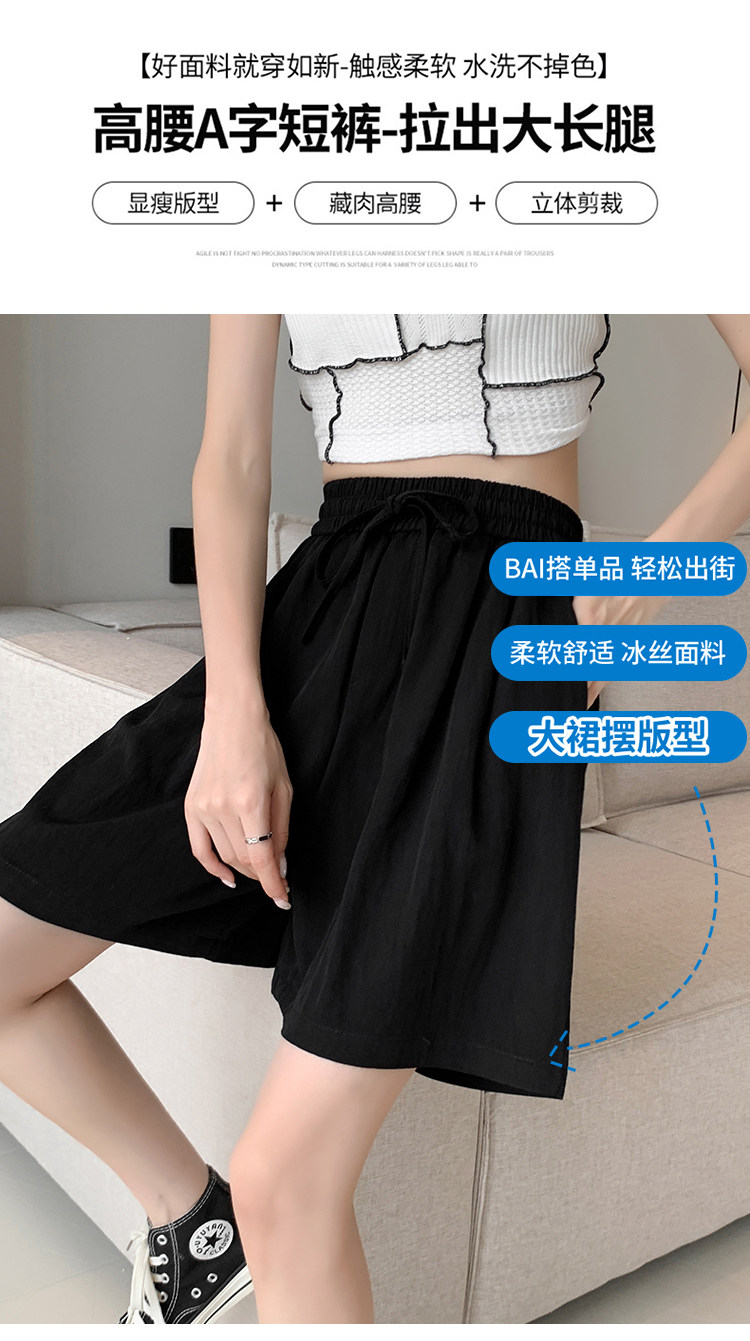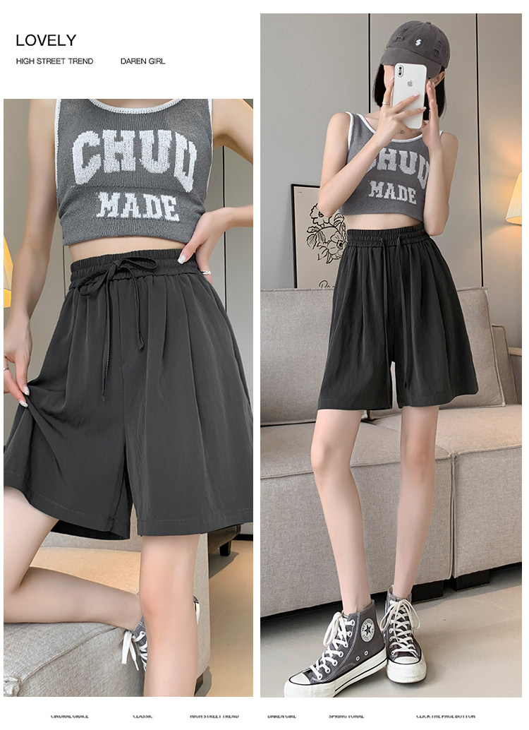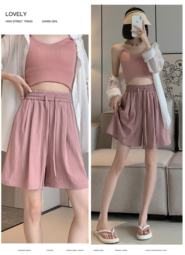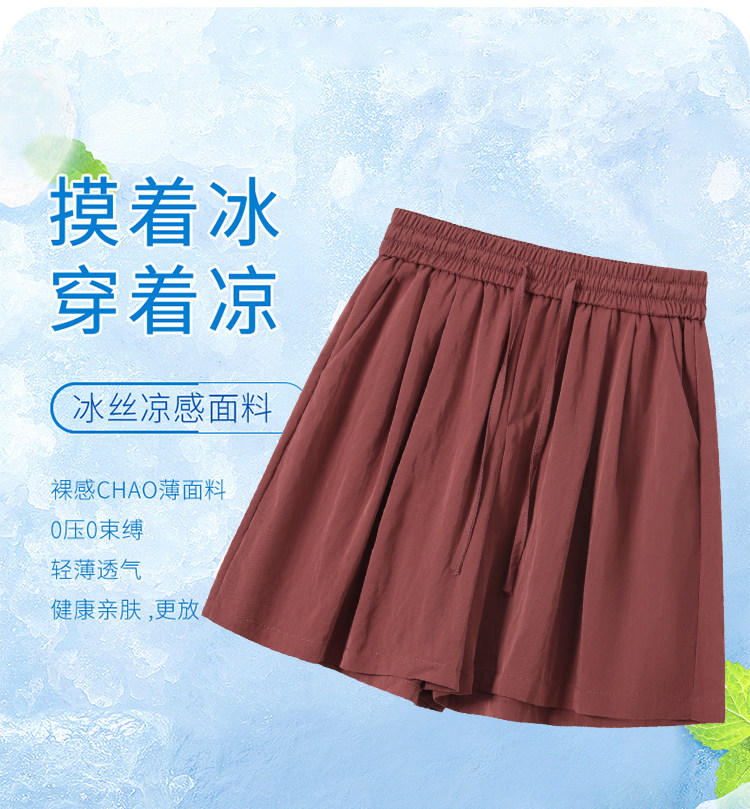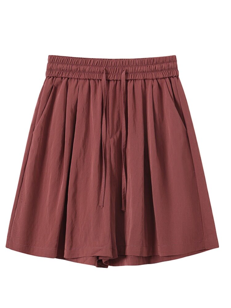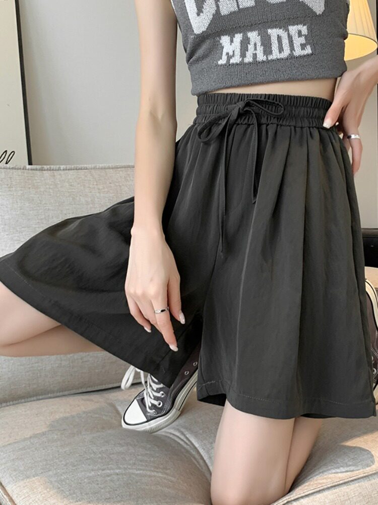 Шелковые шорты, тонкие штаны, эластичная талия, свободный прямой крой
