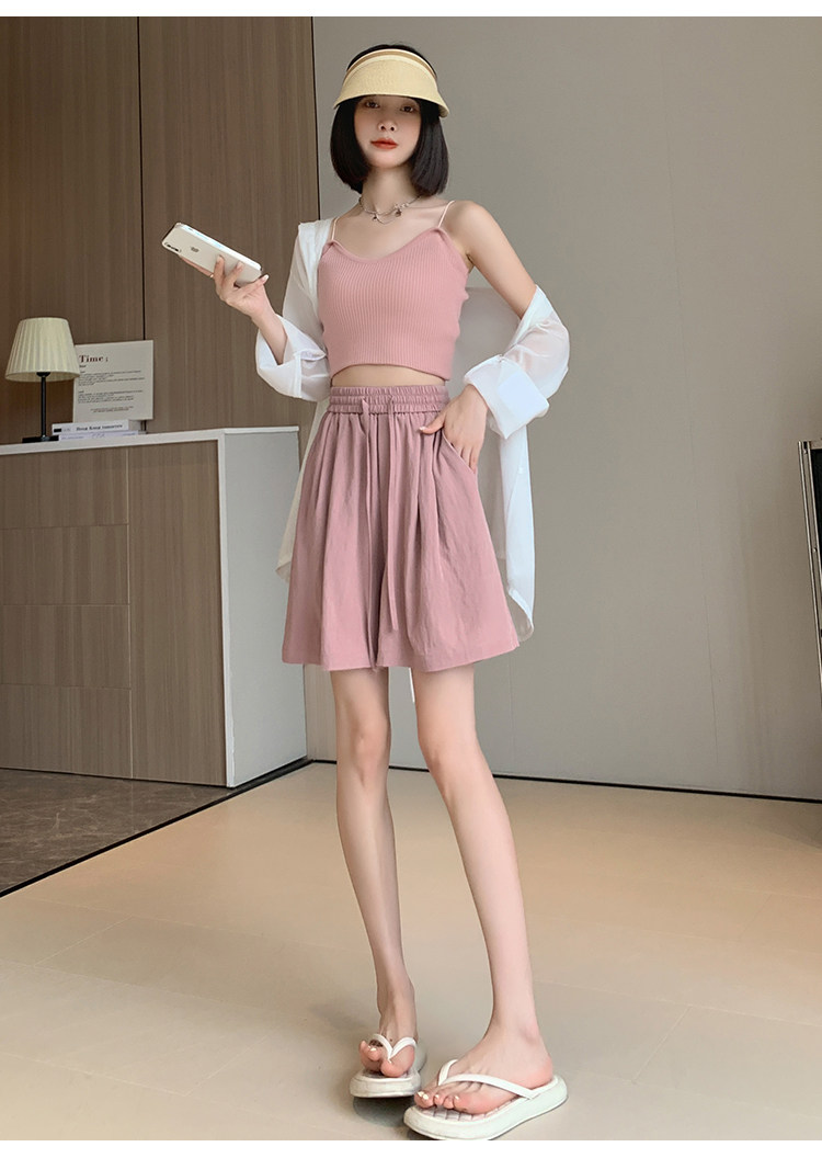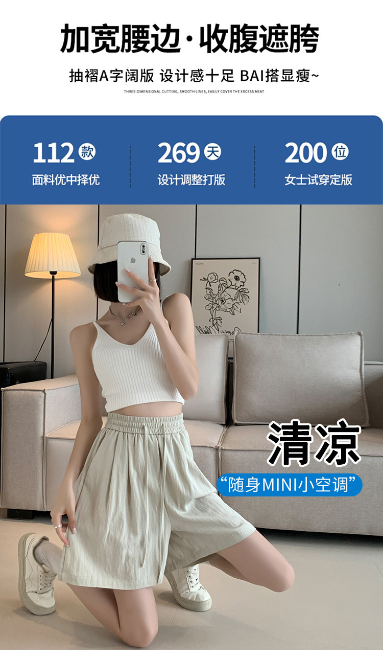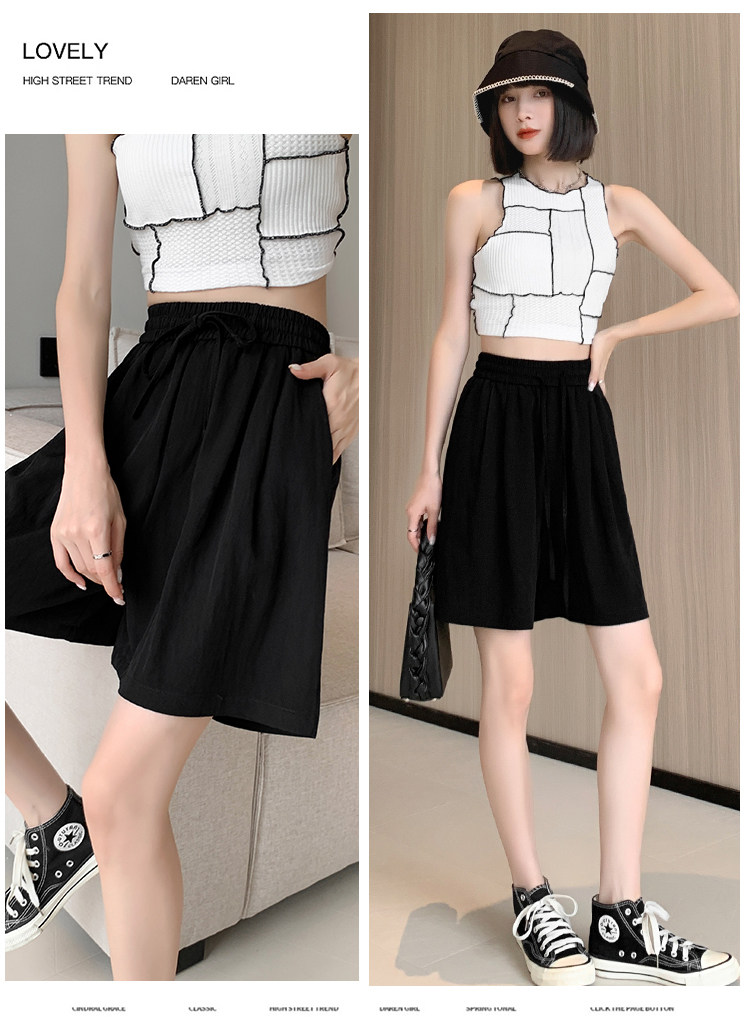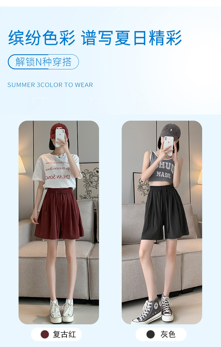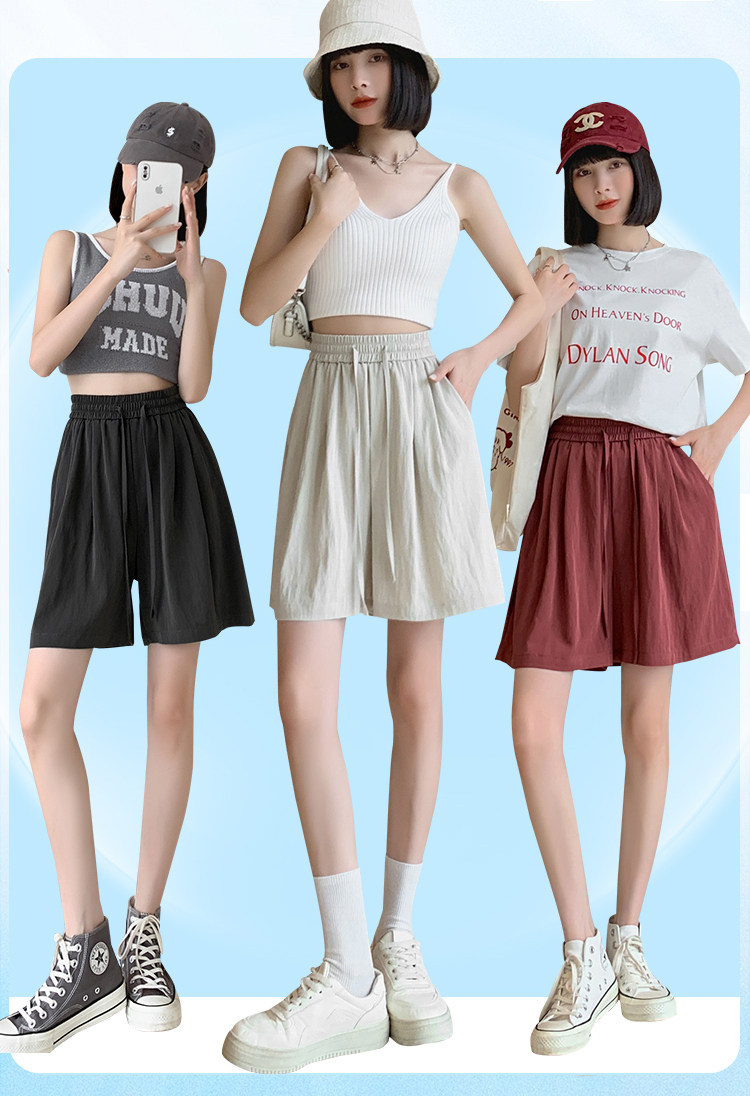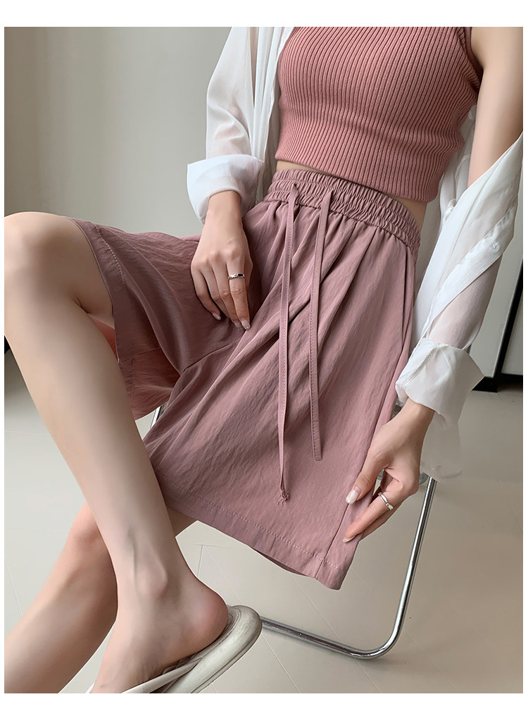Шелковые шорты, тонкие штаны, эластичная талия, свободный прямой крой
