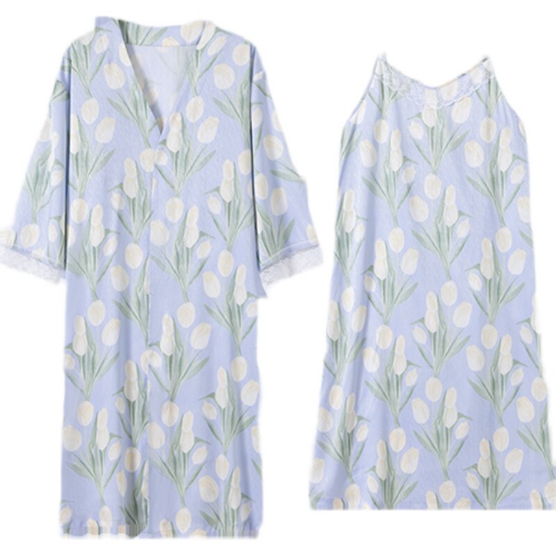 顶瓜瓜 Шелковая пижама, банный халат, комплект, шелковистый лонгслив, эффект подтяжки, 2 шт