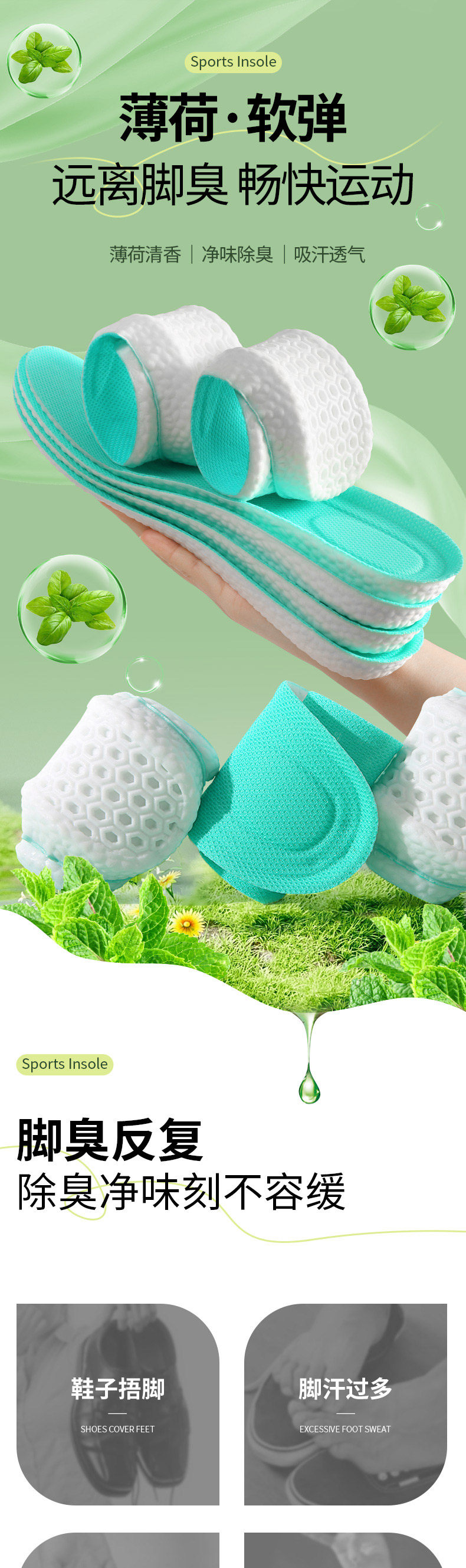 Мужские дышащие спортивные амортизирующие летние стельки, впитывают пот и запах