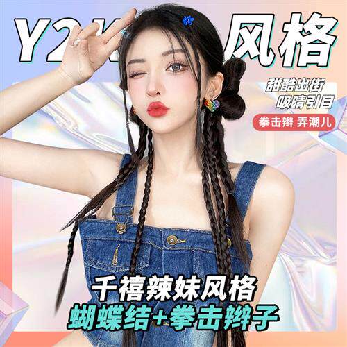 Парик с косичкой, боксерский хвостик с бантиком, популярно в интернете, 2 карат