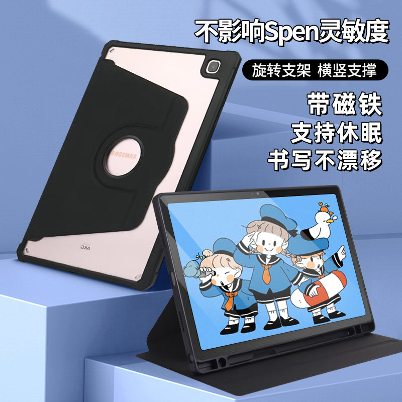Подходит для Samsung Tabs9 Защитный рукав вкладка S8+Plus12.4 Вращающаяся оболочка A9 Unlimited S7FE Прозрачный кожаный чехол Ultra14.6 Anti -Slip Taba8 Таблетка S6Lite Computer 11 -INCH Принесите Glot Glot Glot.