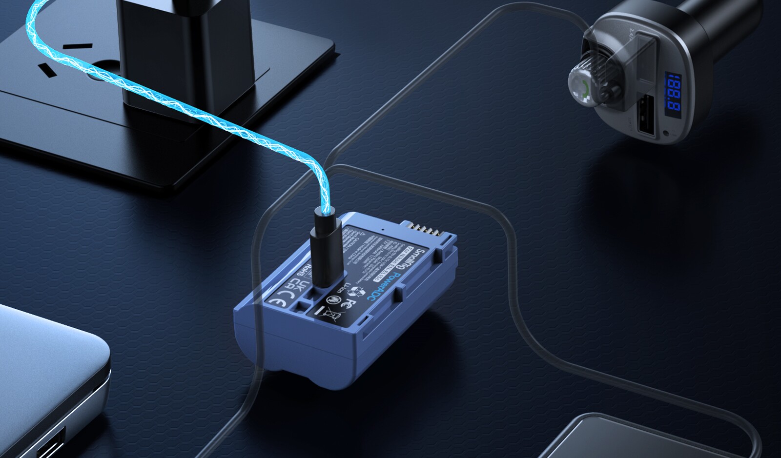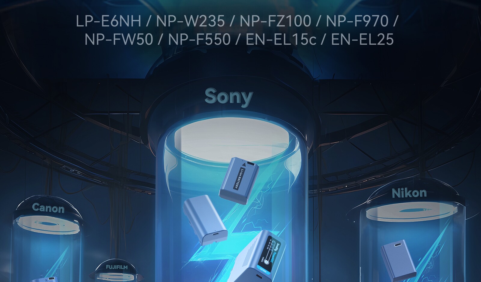 Smomglan Lightning Camera Battery USB-C Прямая зарядка NP-FZ100/LP-E6NH/NP-W235 подходит для серии Sony Canon Fuji и другой камеры A7M4/ZV-E1 Typec Battery