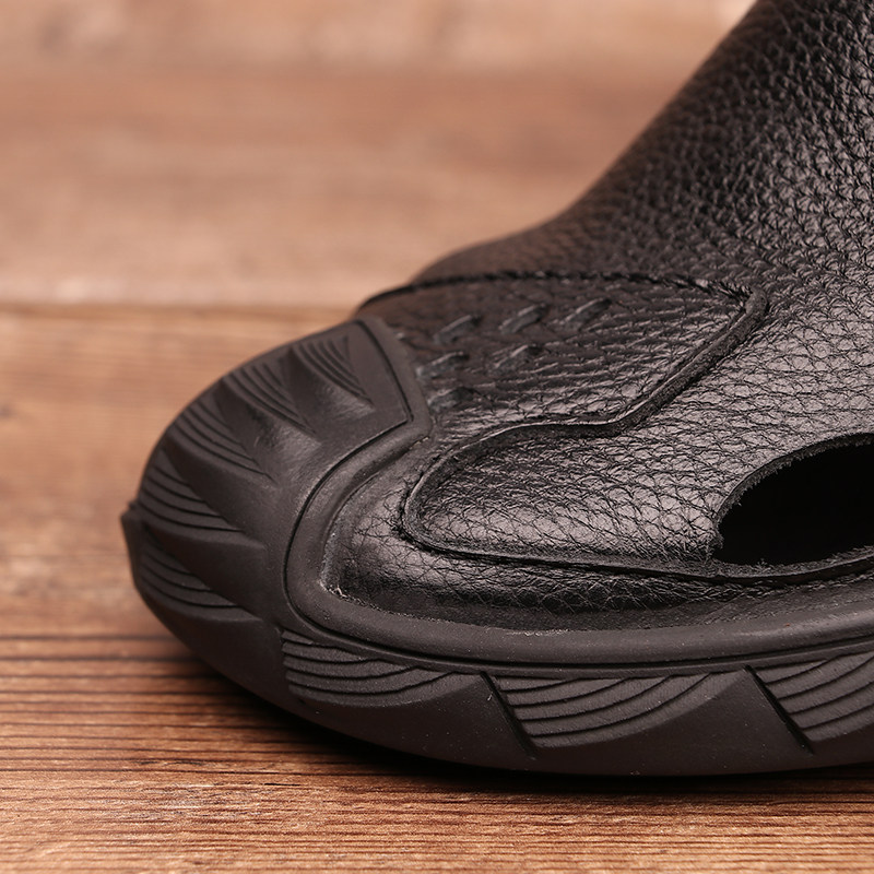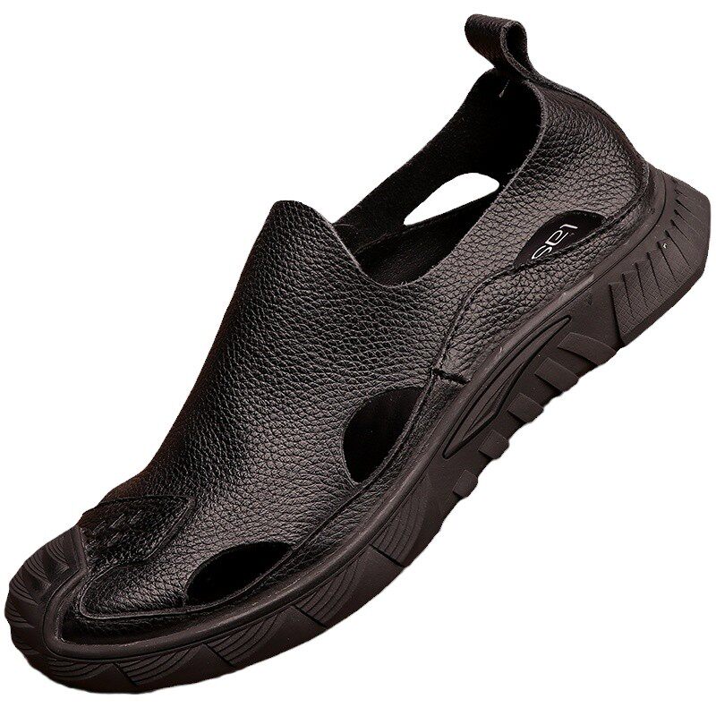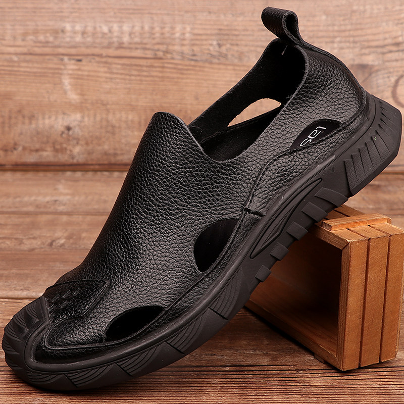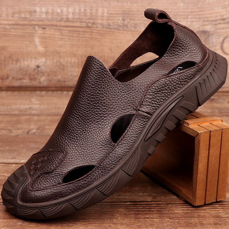 Летние кожаные босоножки, дышащие тапочки, из натуральной кожи
