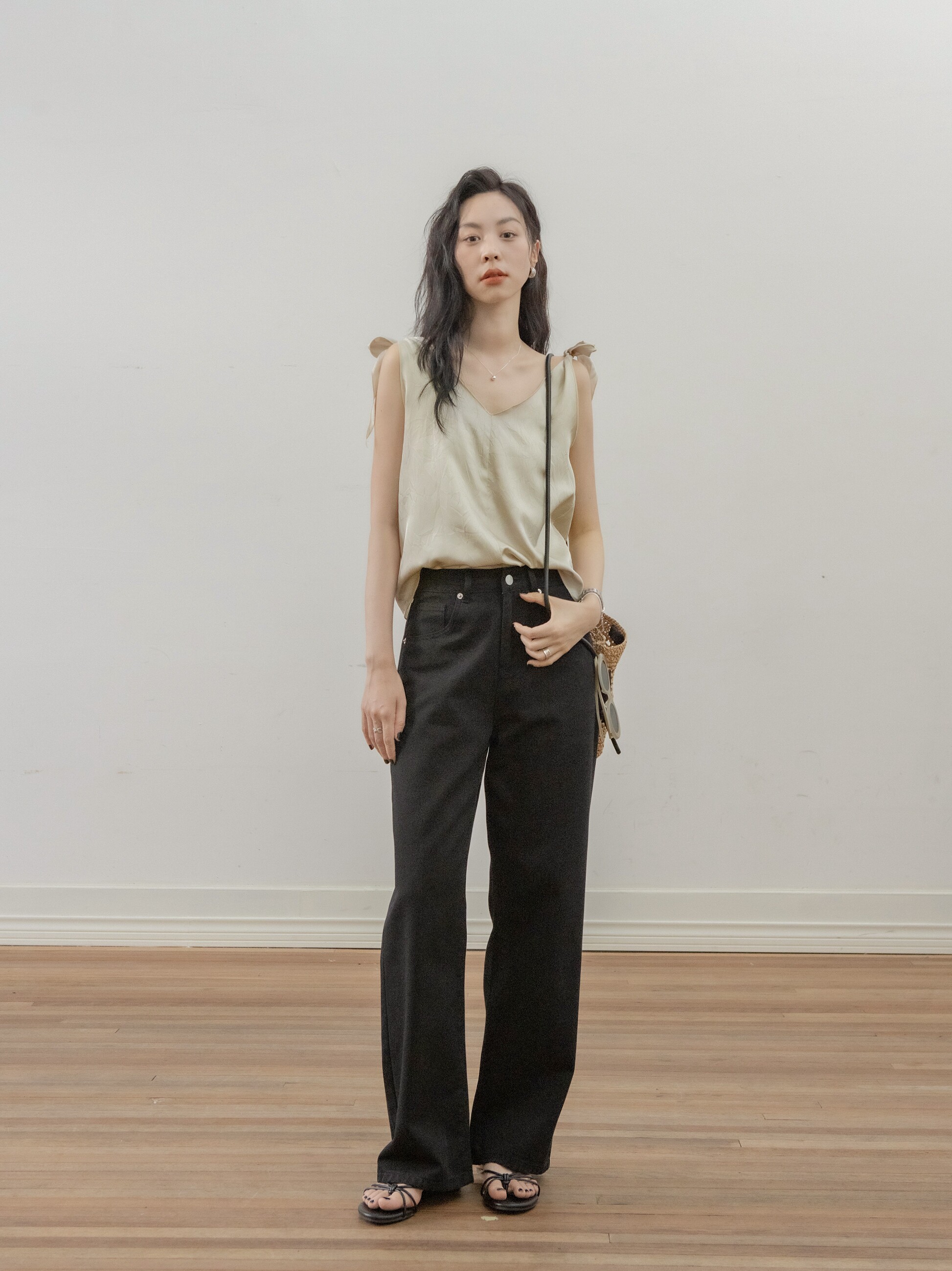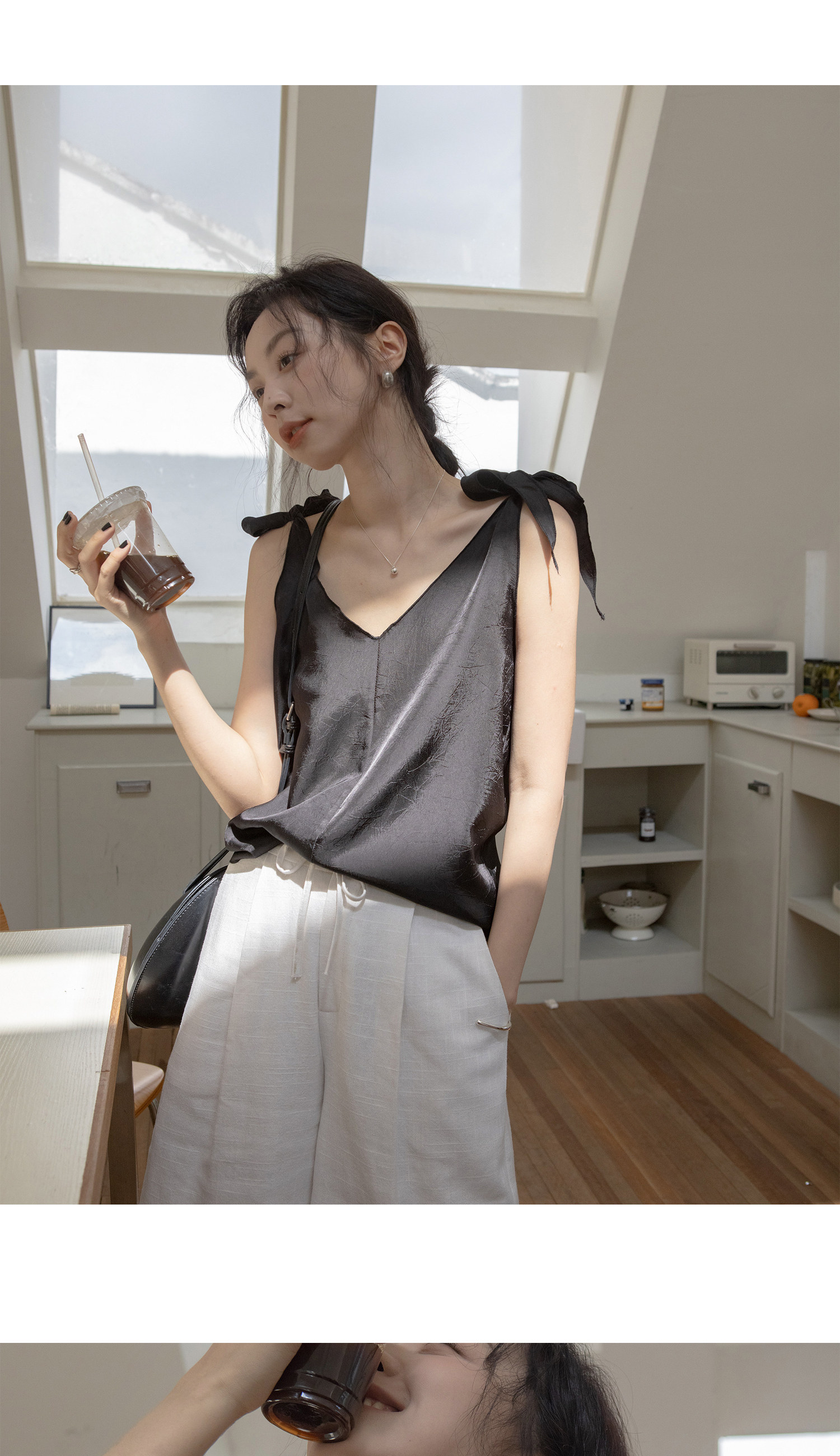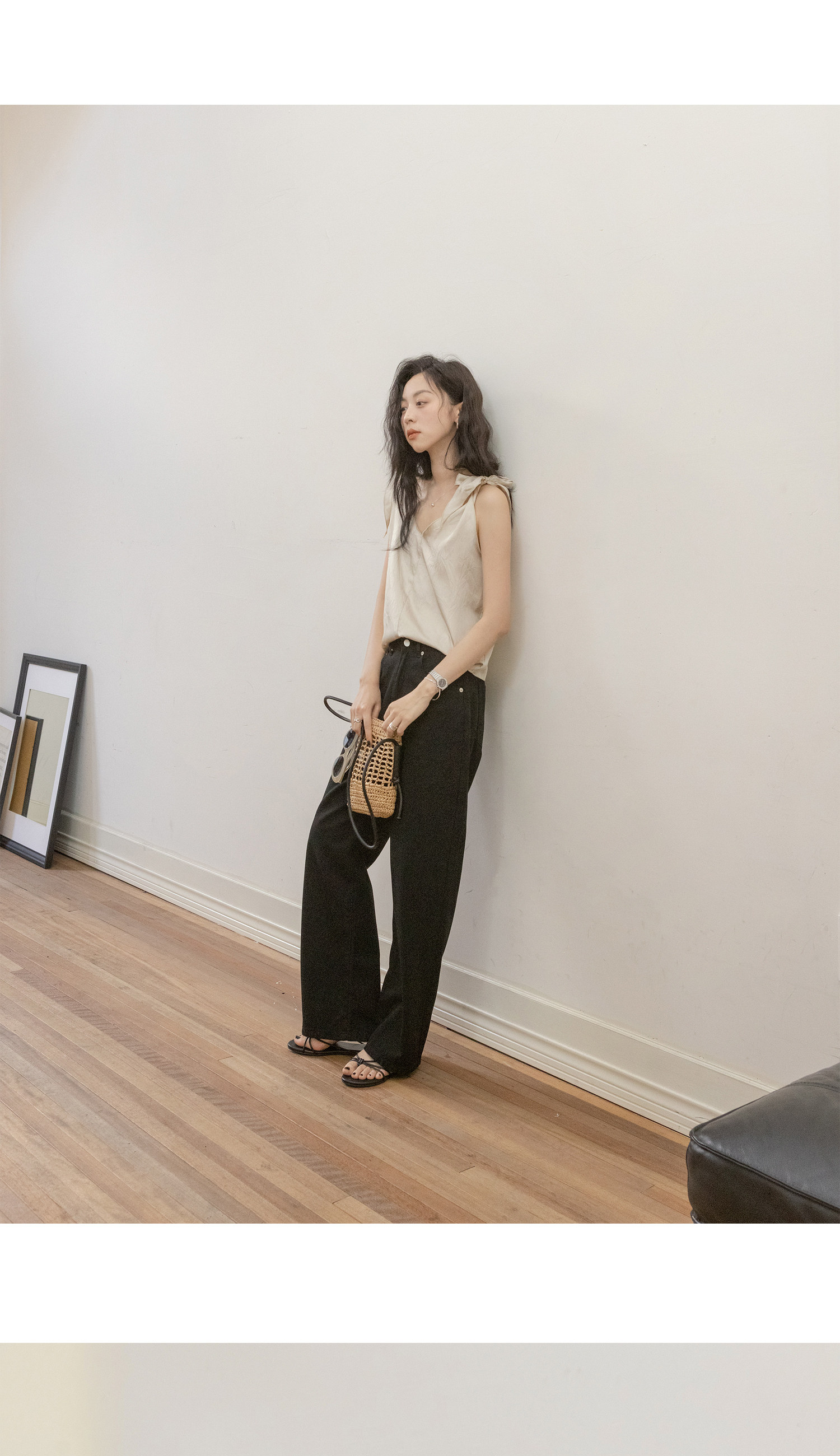 Летняя майка топ, дизайнерский ремень, V-образный вырез, тренд сезона
