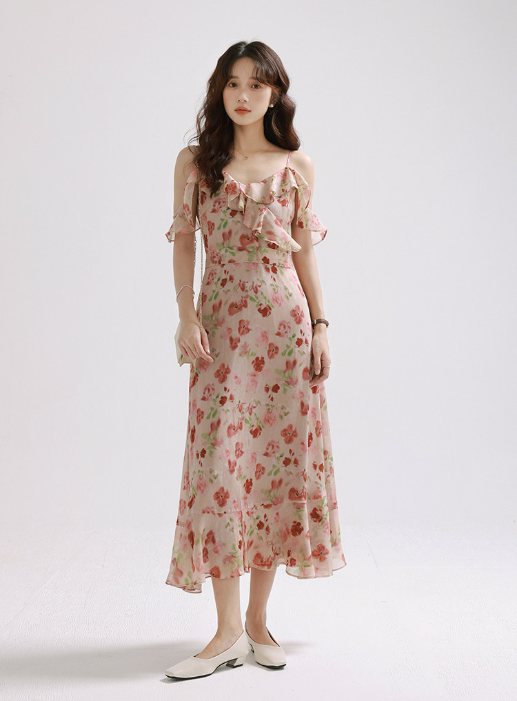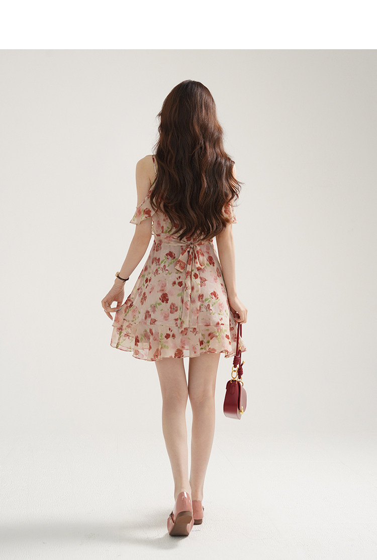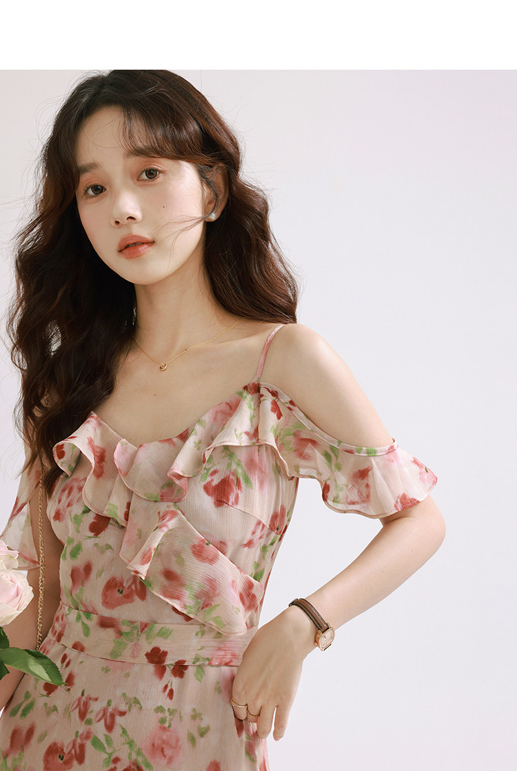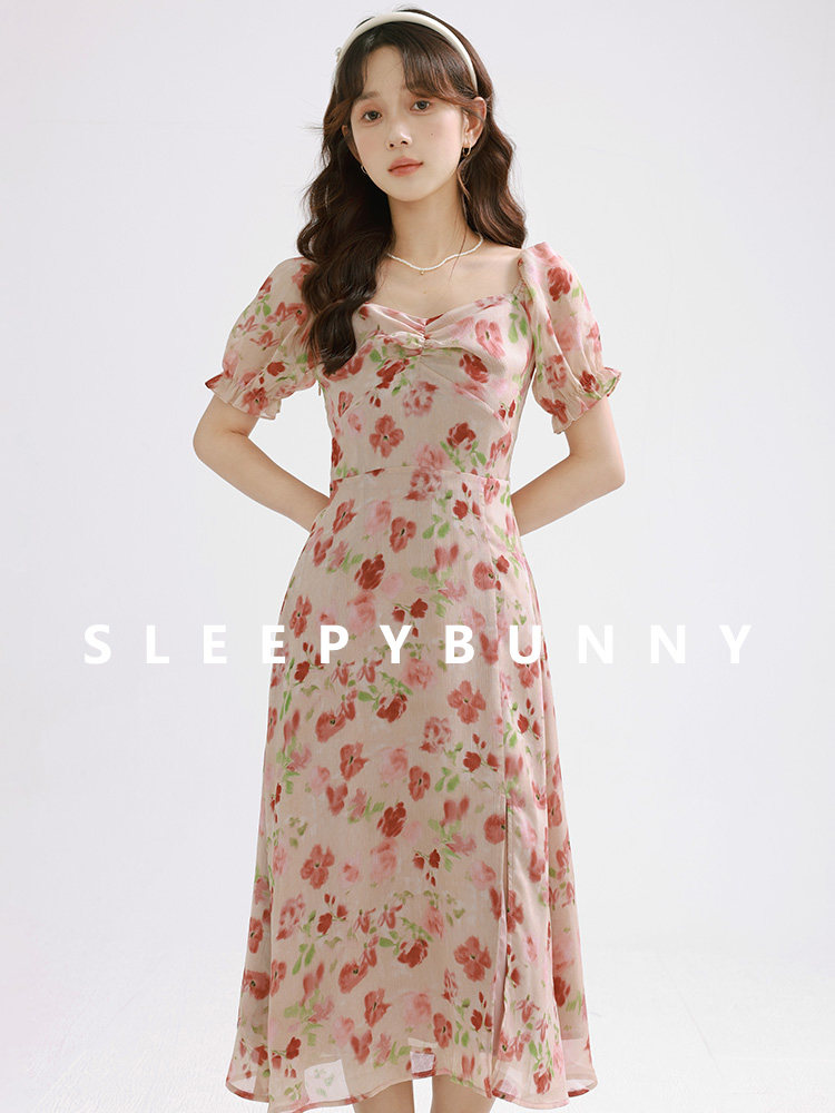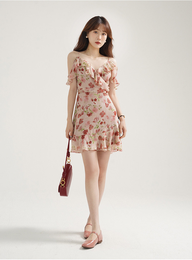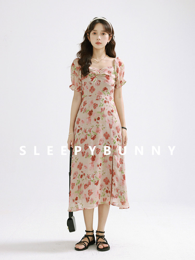 Женское платье-комбинация Sleepy Bunny Sunset Rose Pink с принтом Sweet, Tender and Pure Desire с рюшами