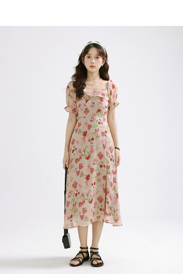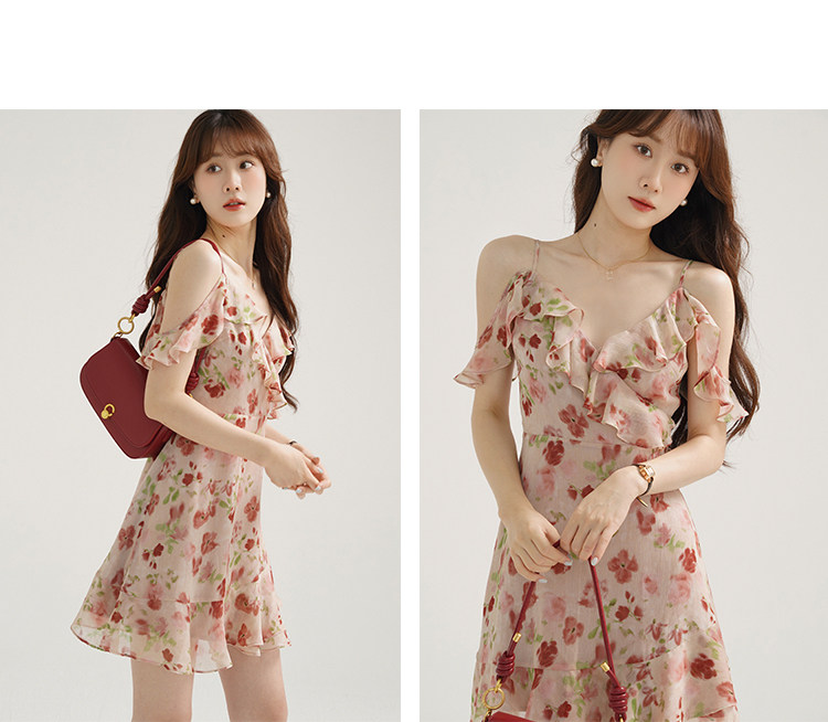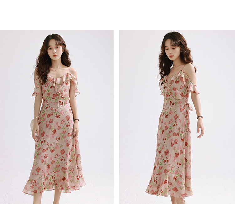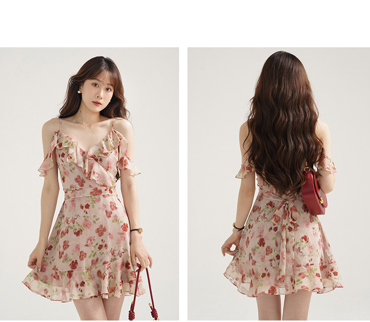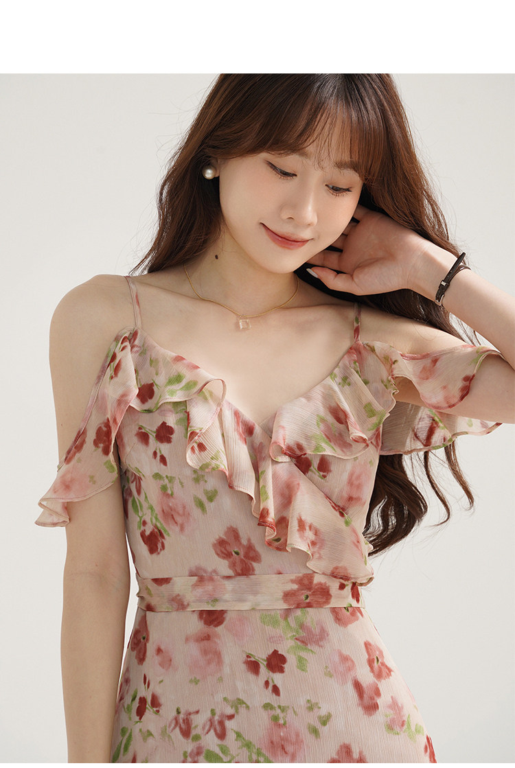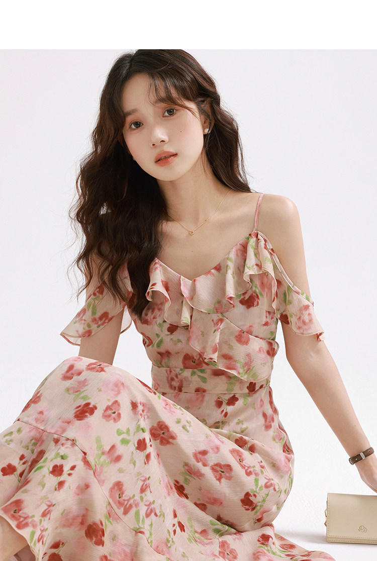 Женское платье-комбинация Sleepy Bunny Sunset Rose Pink с принтом Sweet, Tender and Pure Desire с рюшами