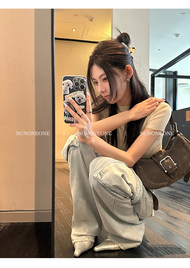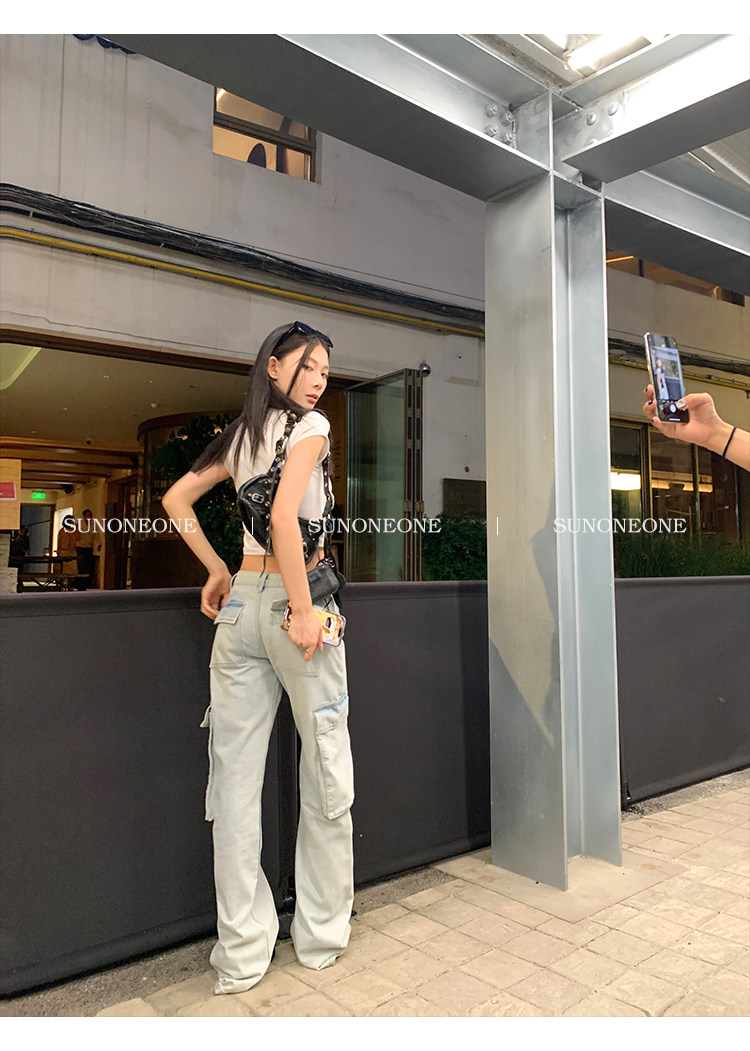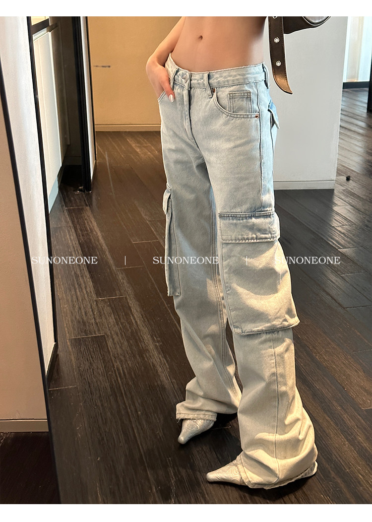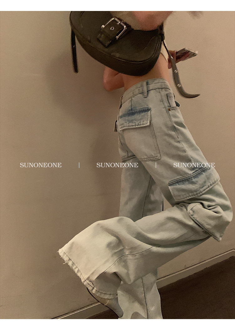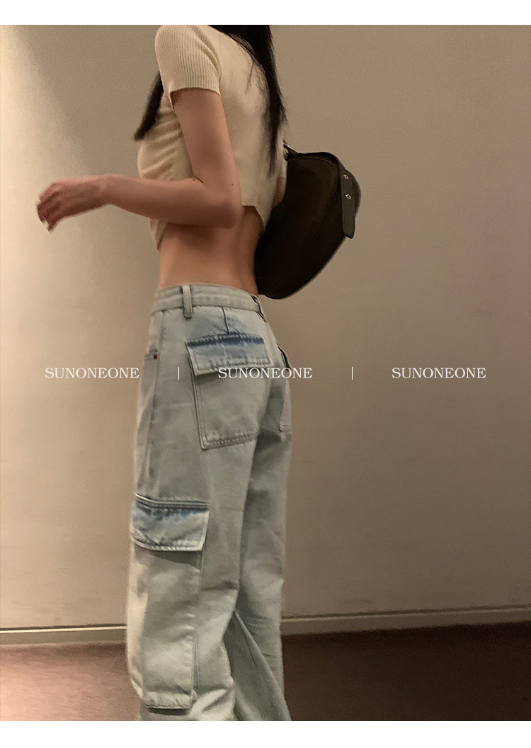 Светлые летние штаны, джинсы, в американском стиле, свободный прямой крой