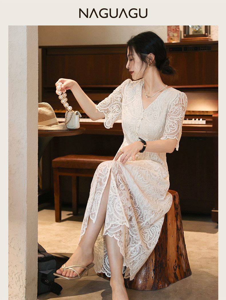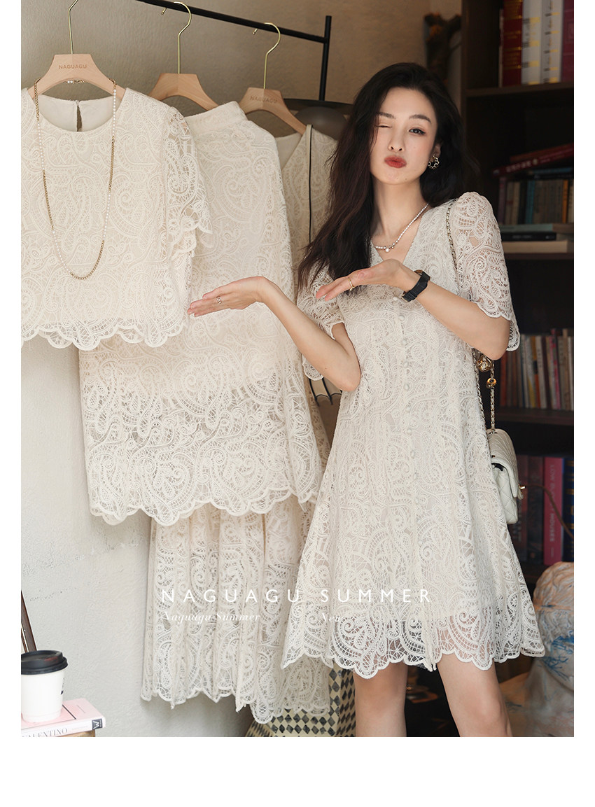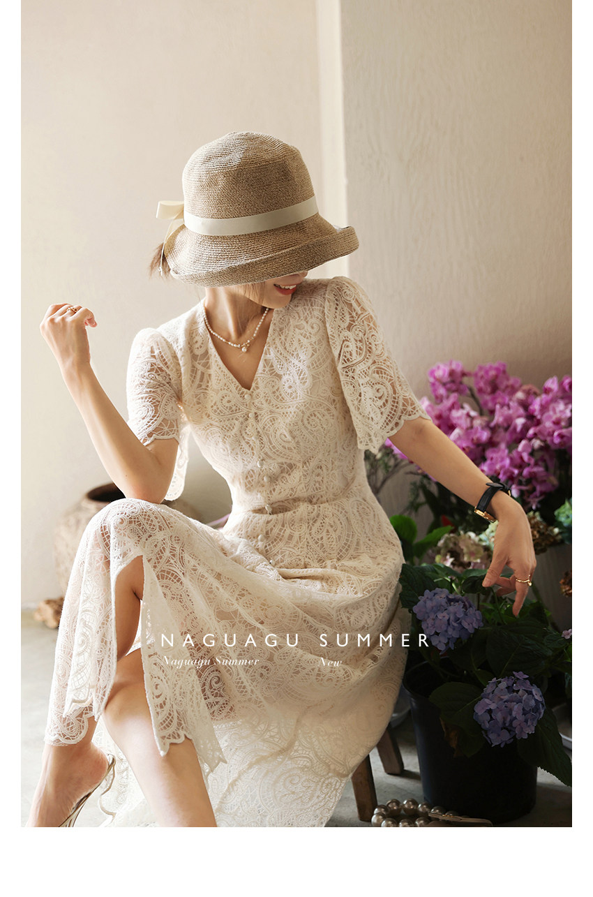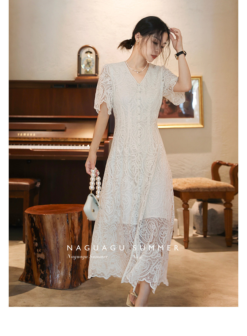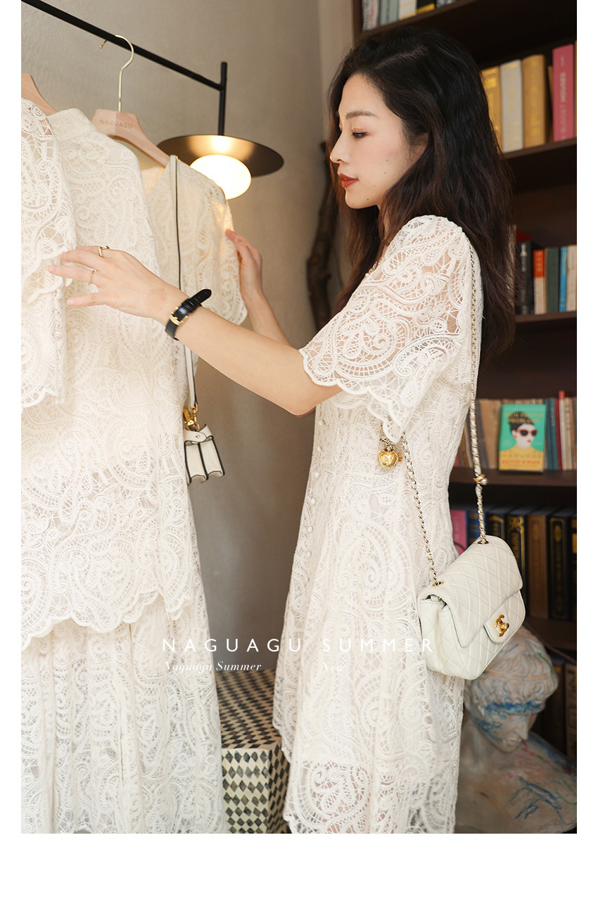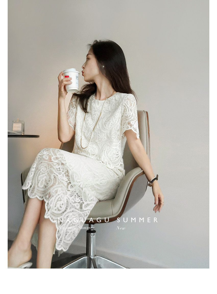 Кружевное летнее платье, белая юбка, французский стиль
