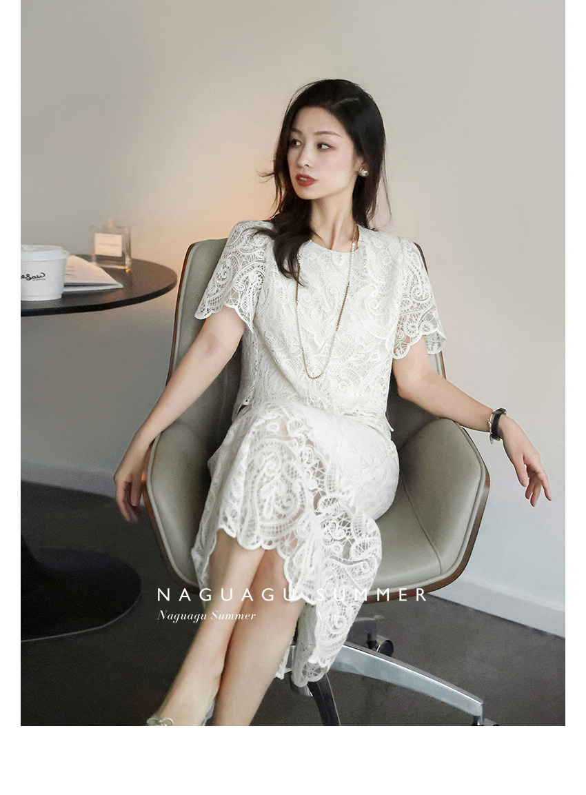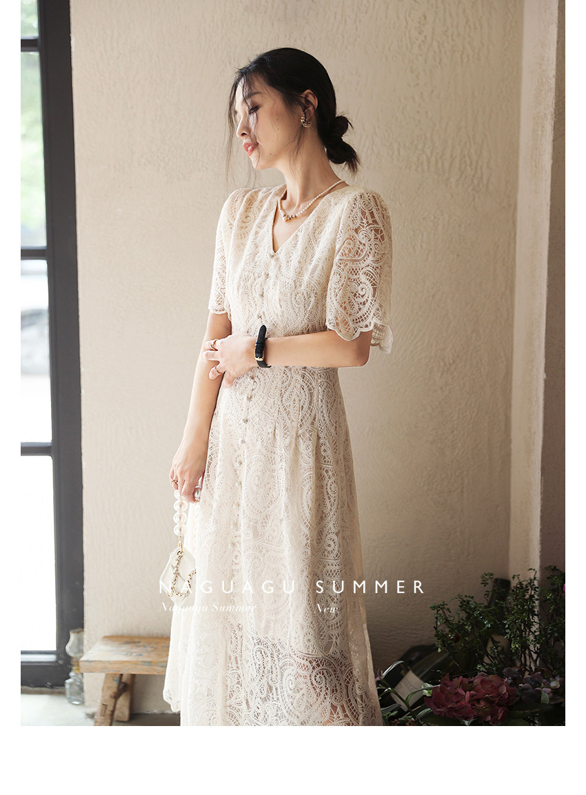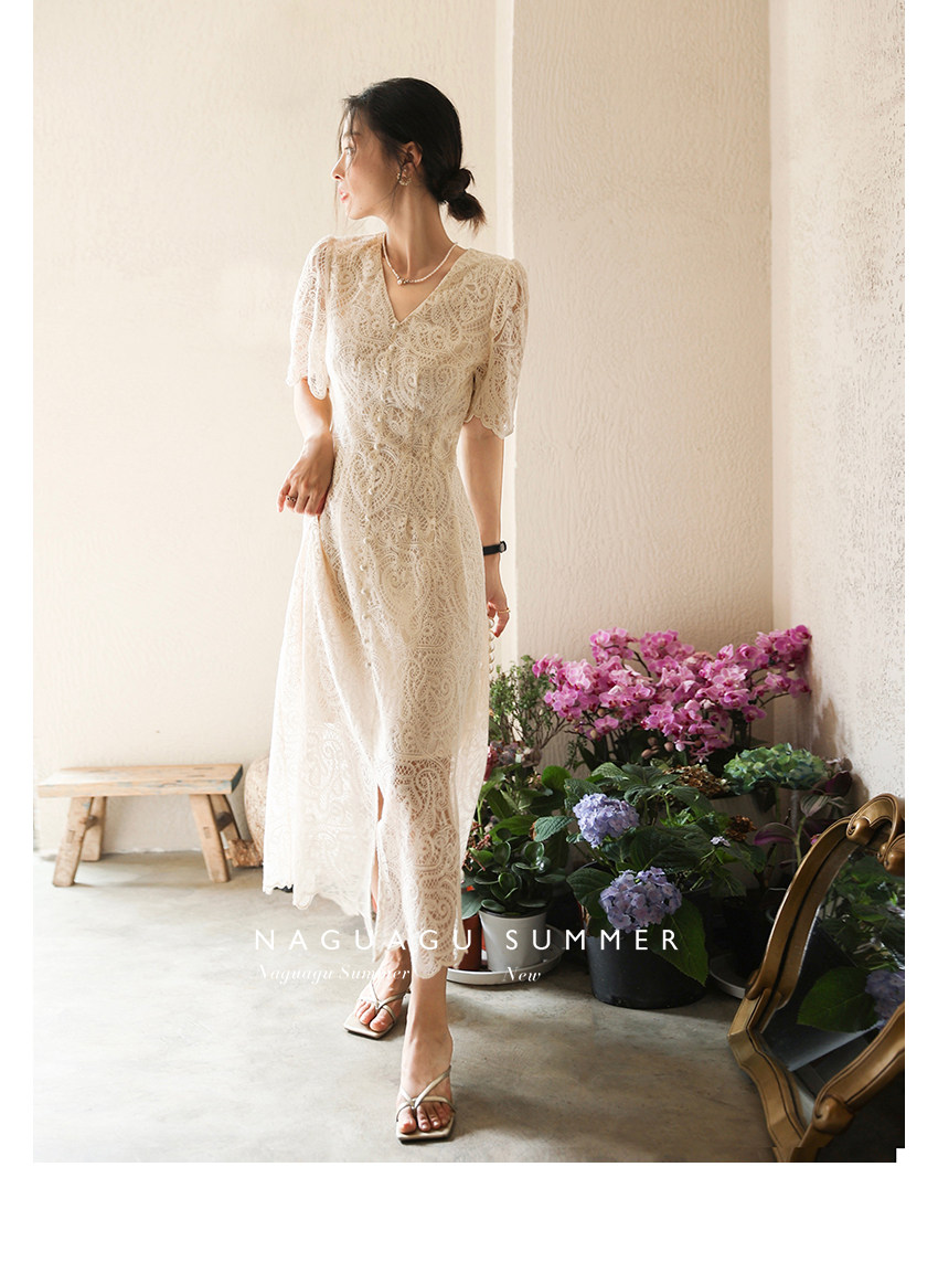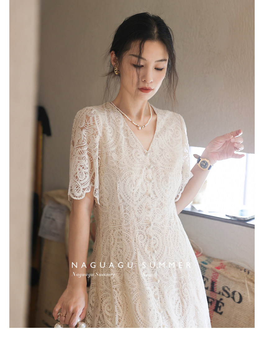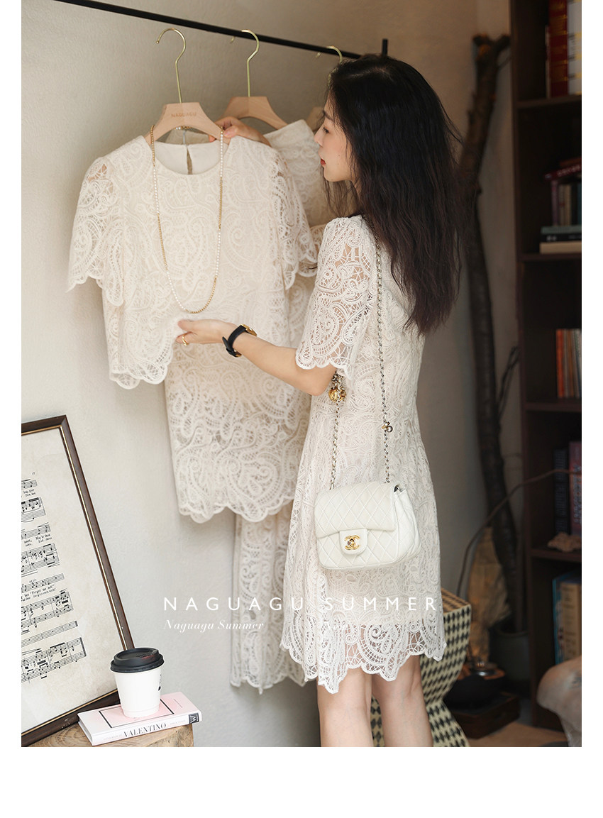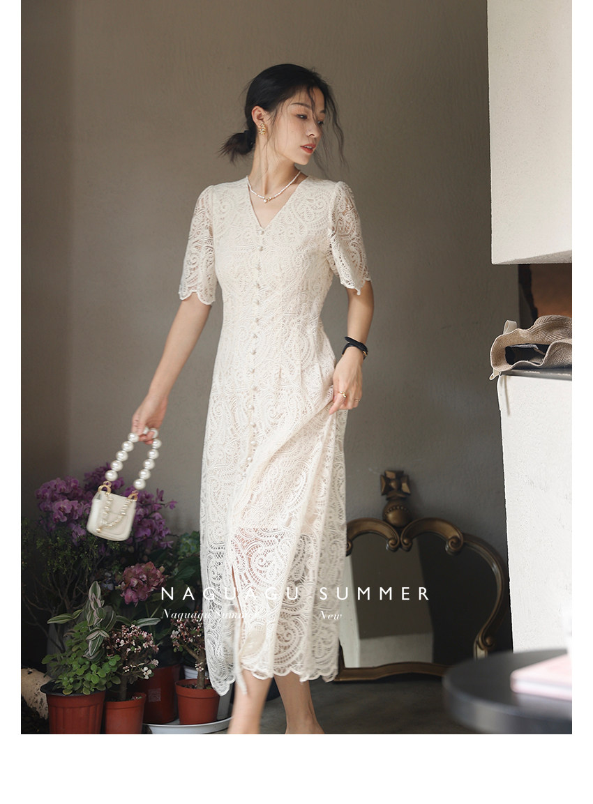 Кружевное летнее платье, белая юбка, французский стиль