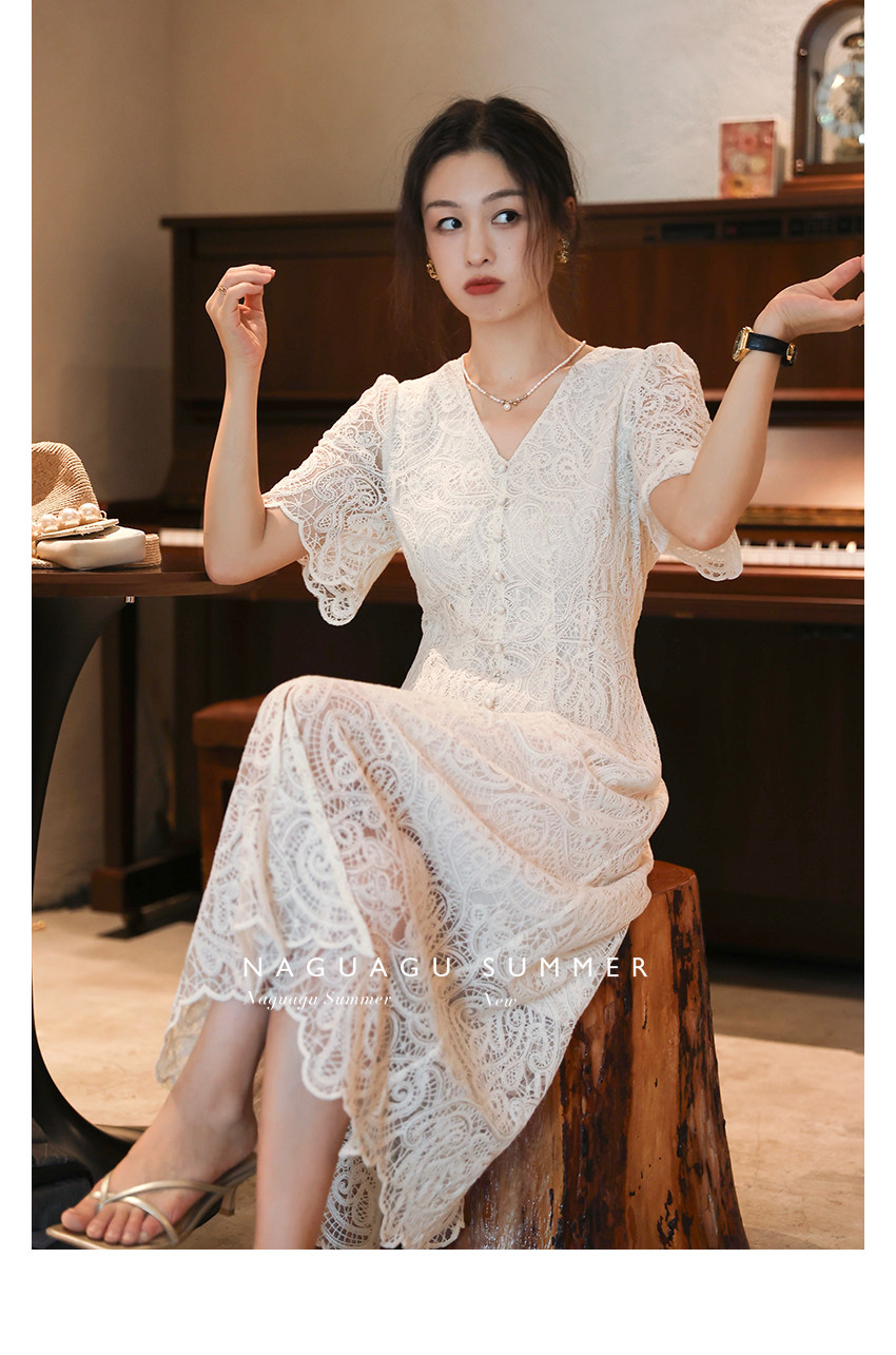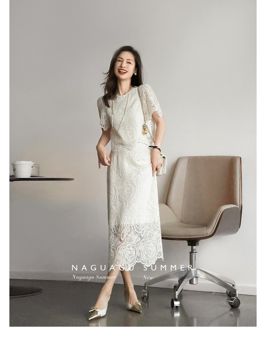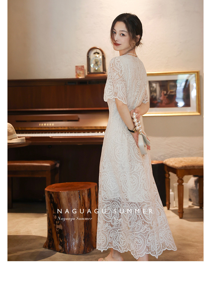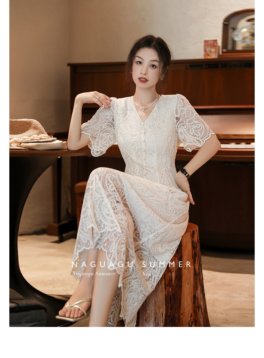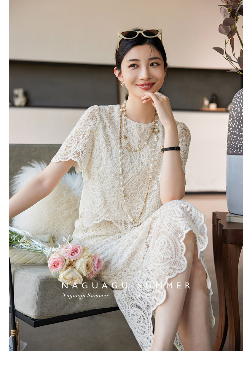 Кружевное летнее платье, белая юбка, французский стиль