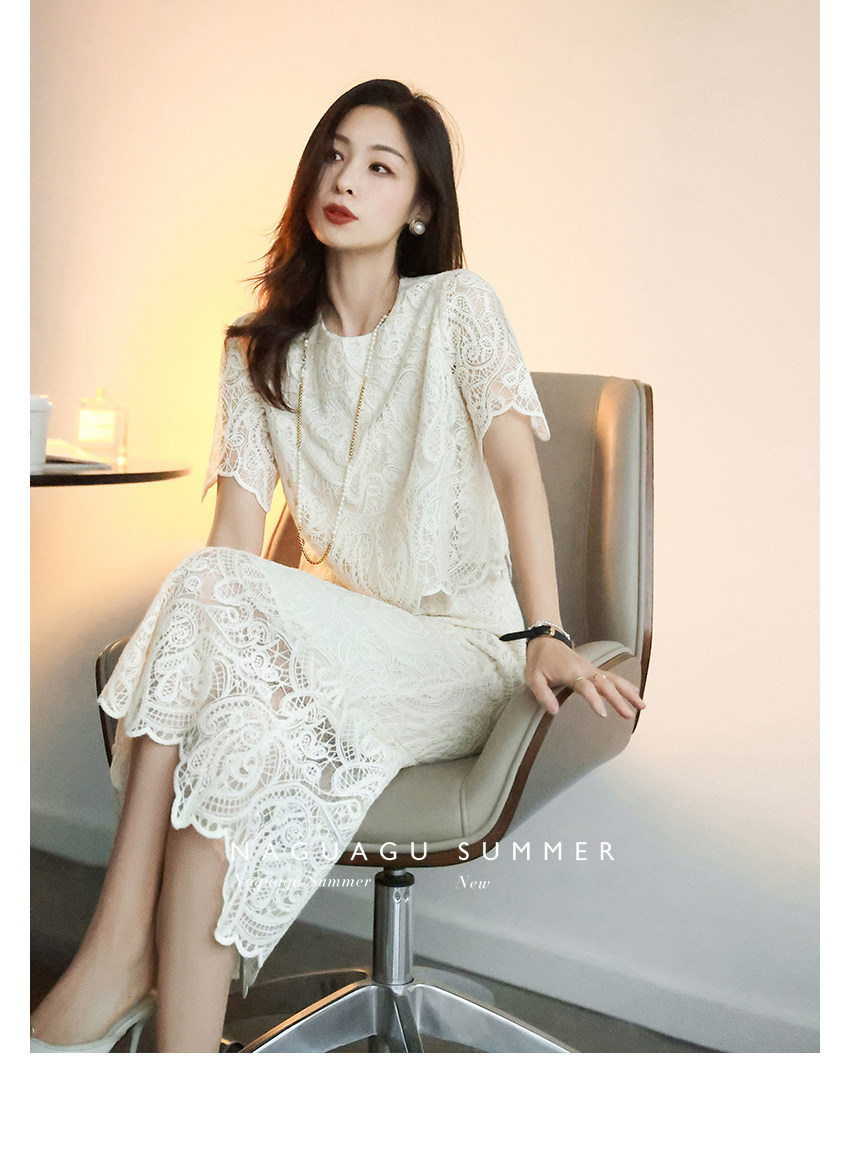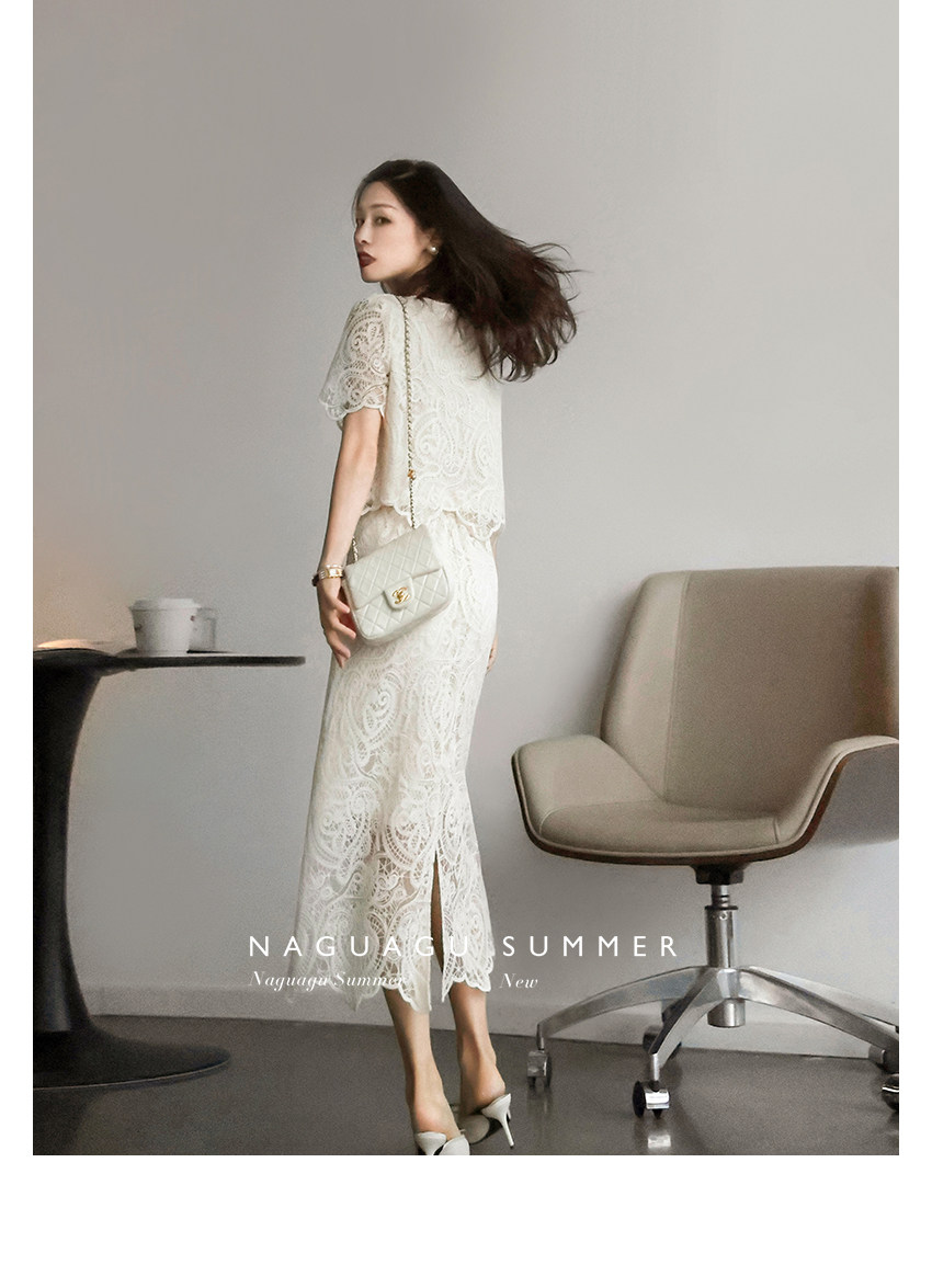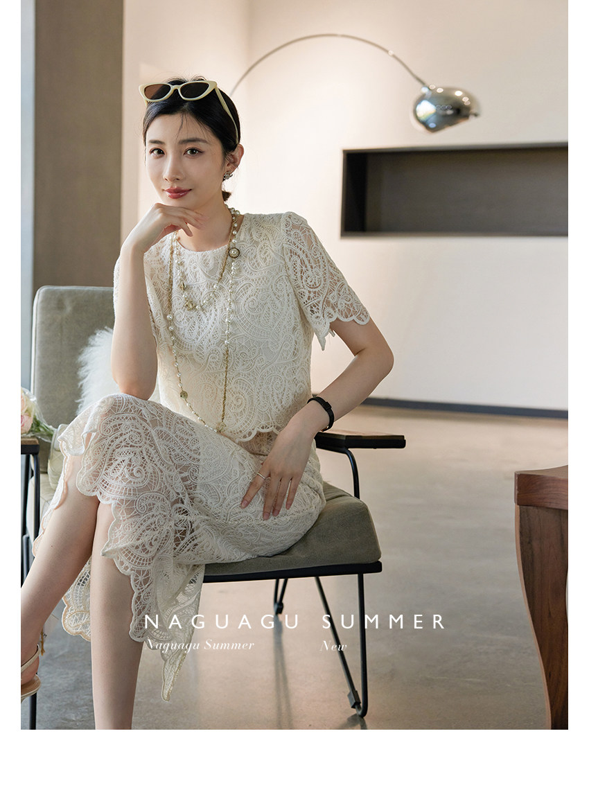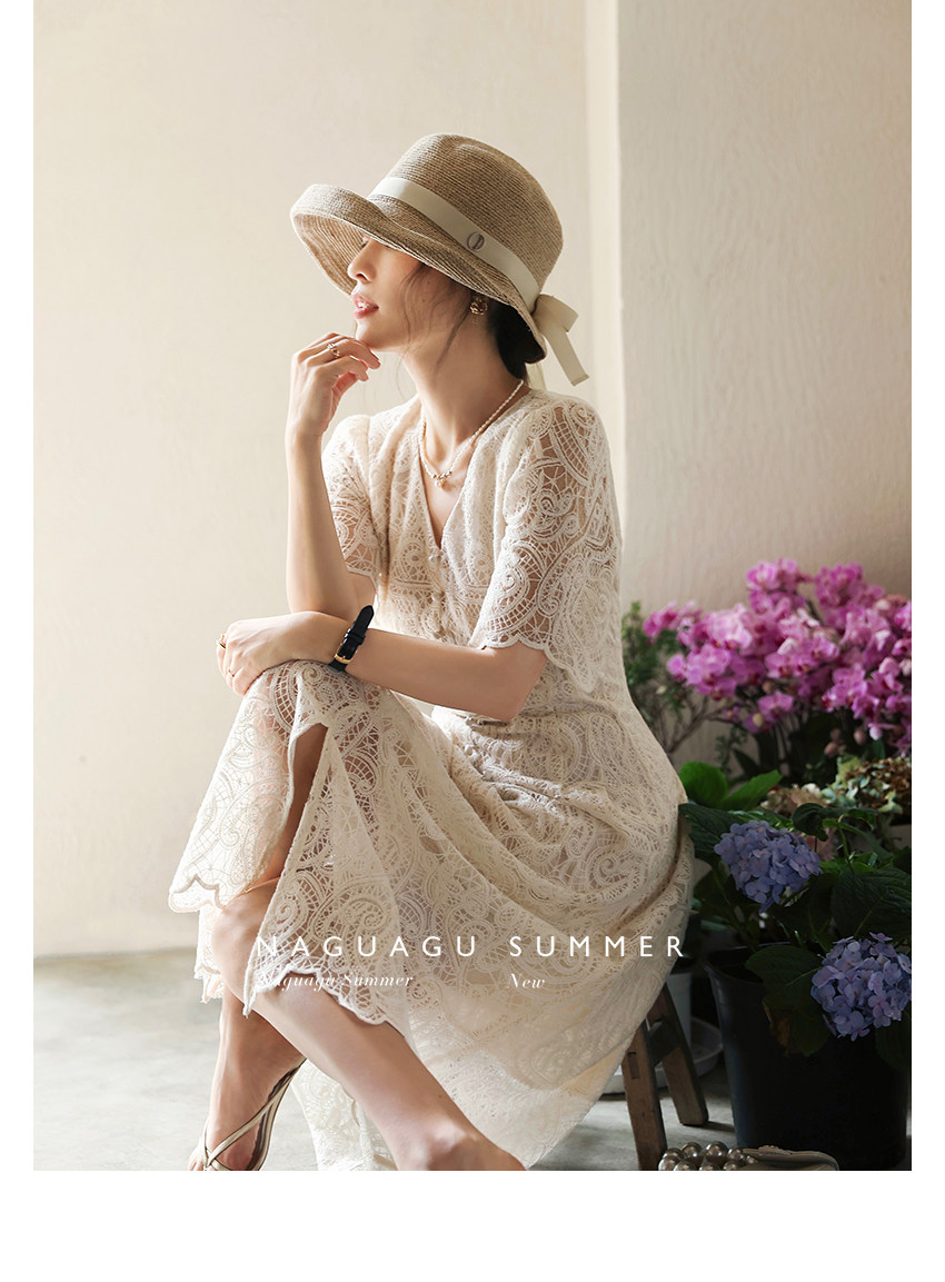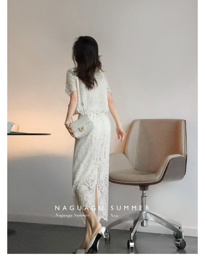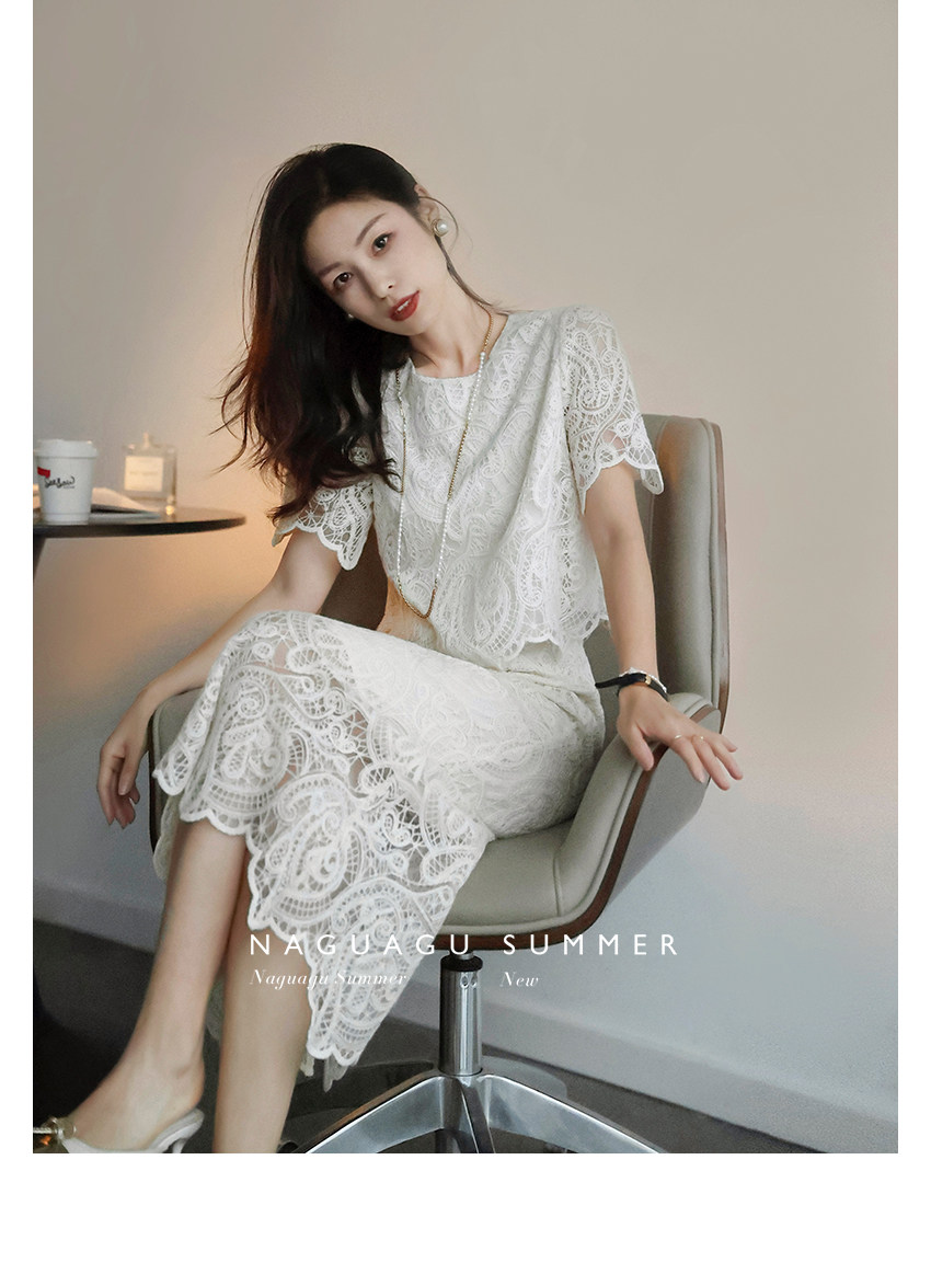 Кружевное летнее платье, белая юбка, французский стиль