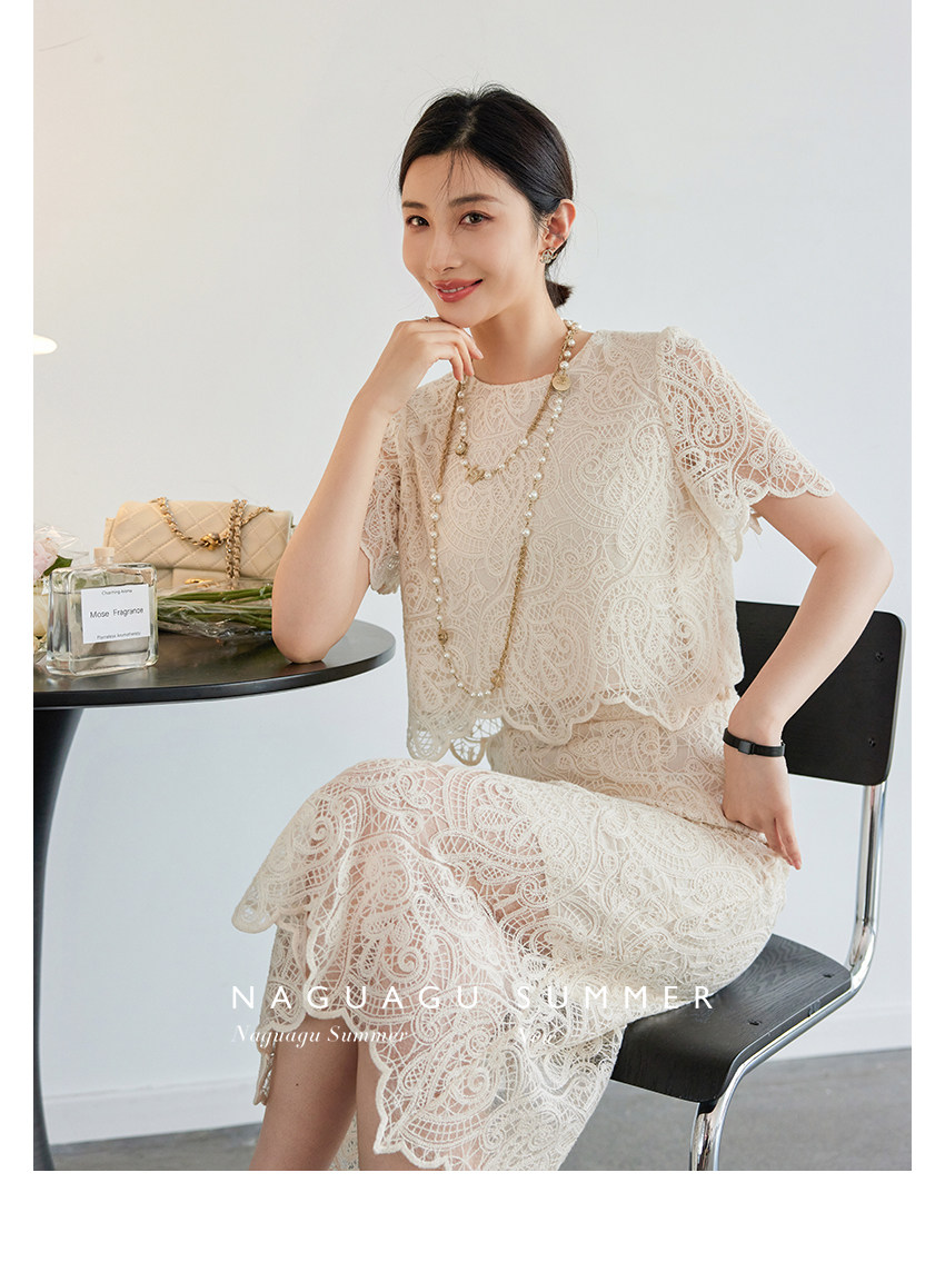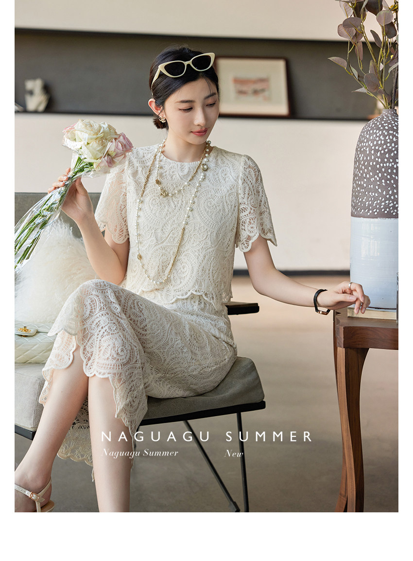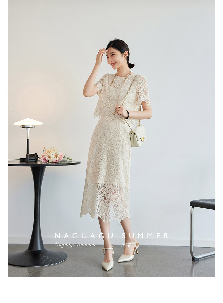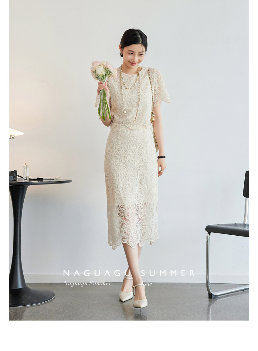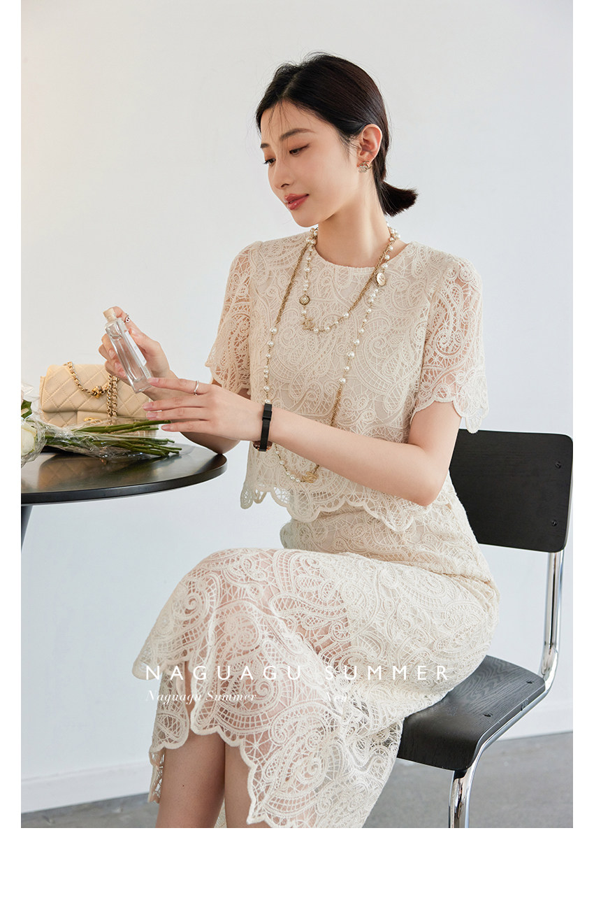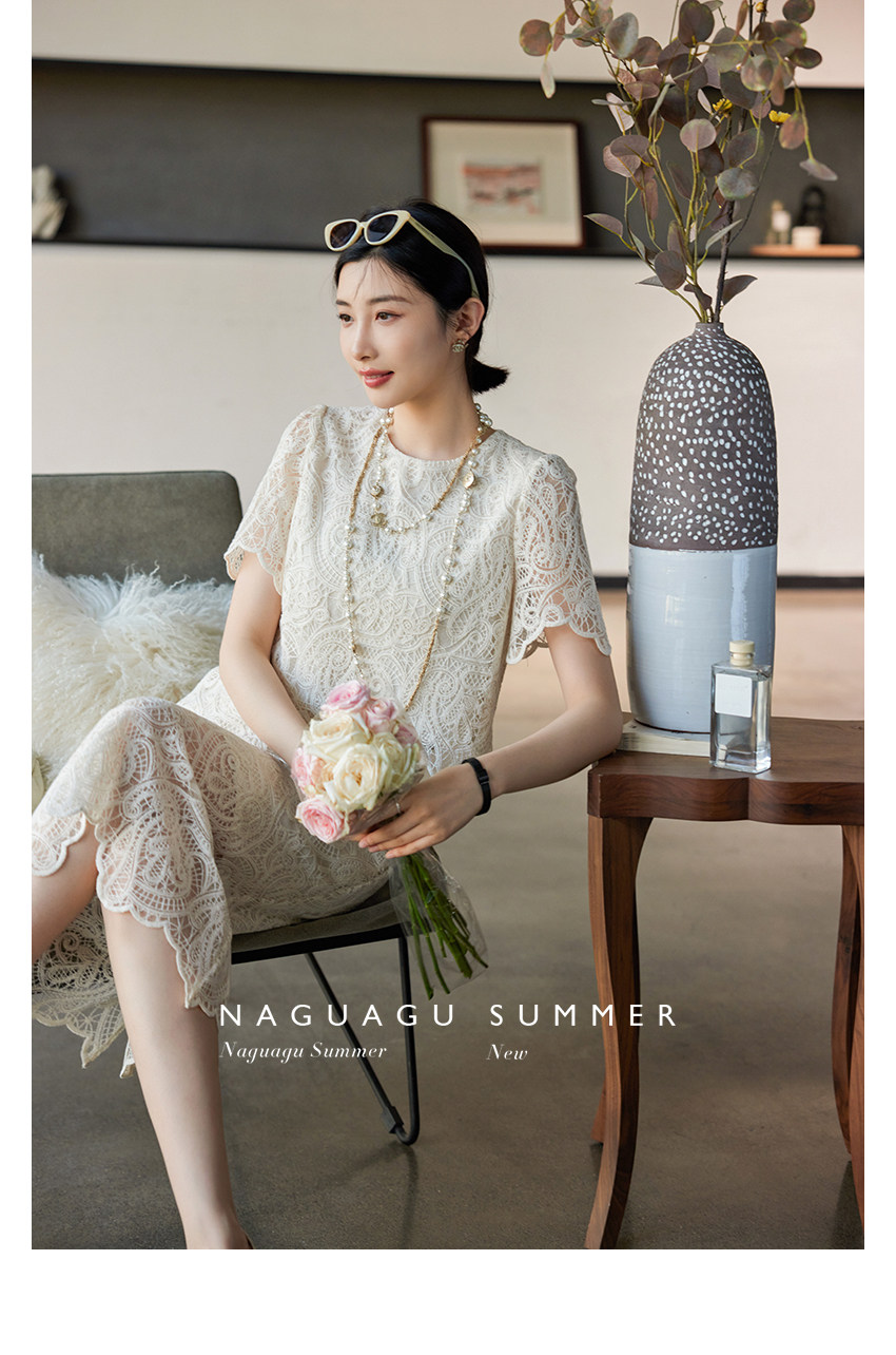 Кружевное летнее платье, белая юбка, французский стиль