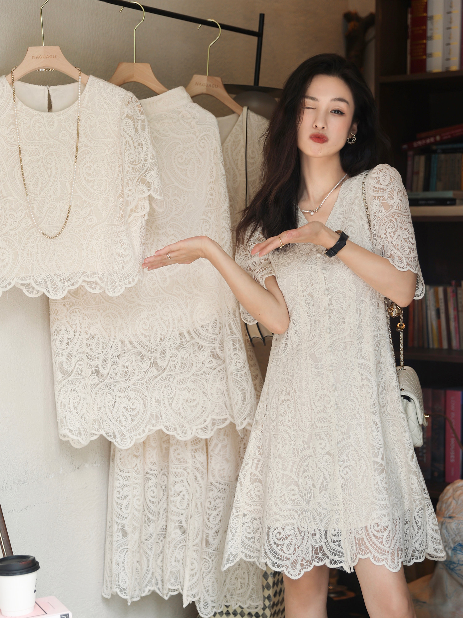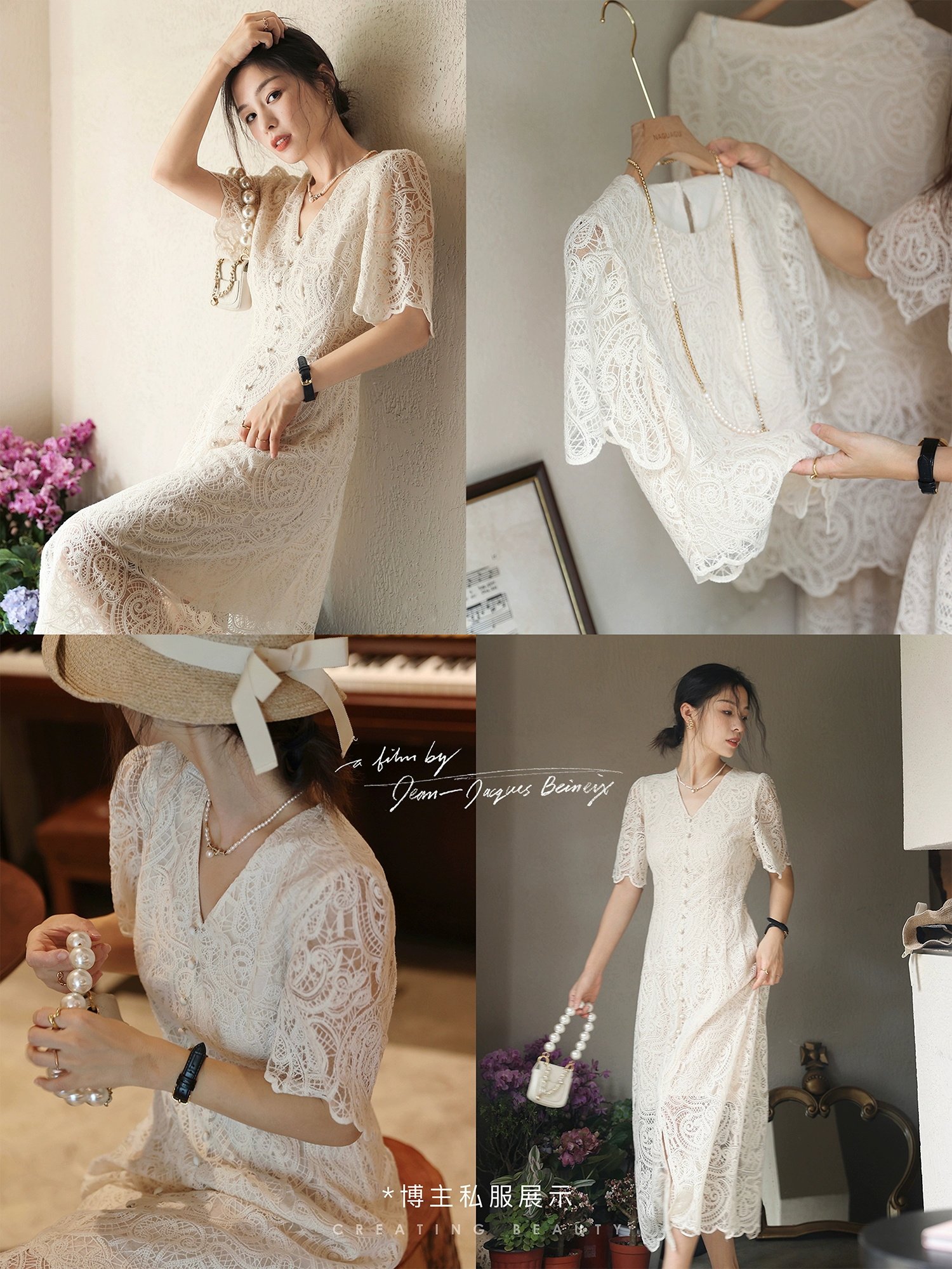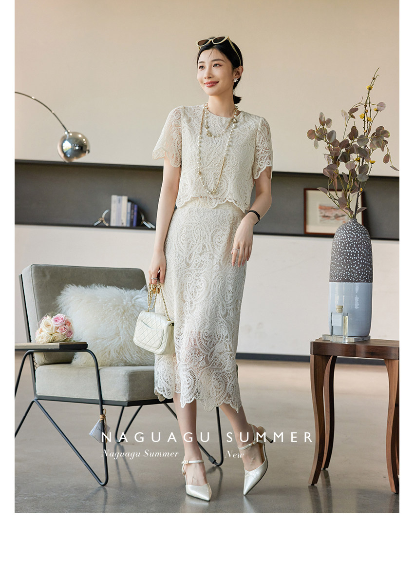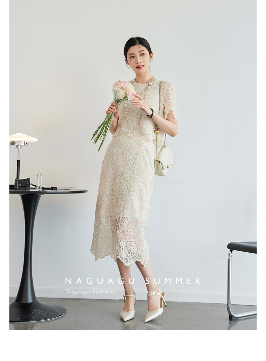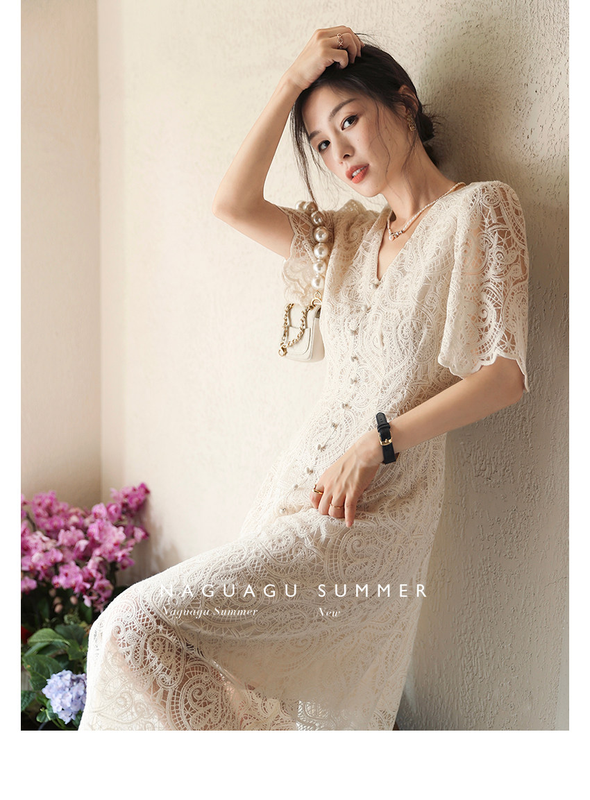 Кружевное летнее платье, белая юбка, французский стиль