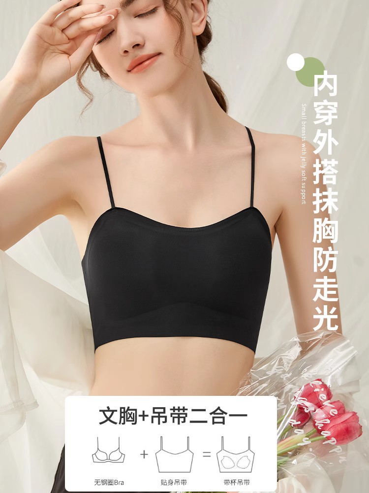 Летний топ без лямок, нижнее белье, бюстгалтер, тонкая шелковая майка топ, топ с чашечками, защитное белье, красивая спина, для маленькой груди
