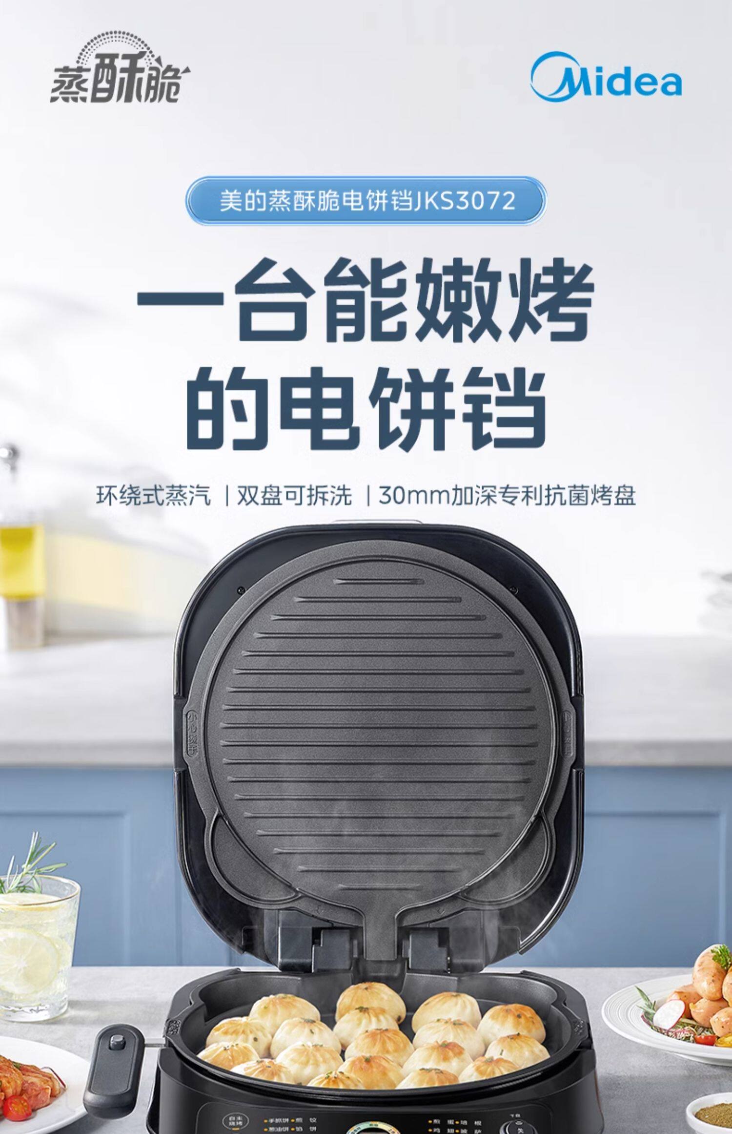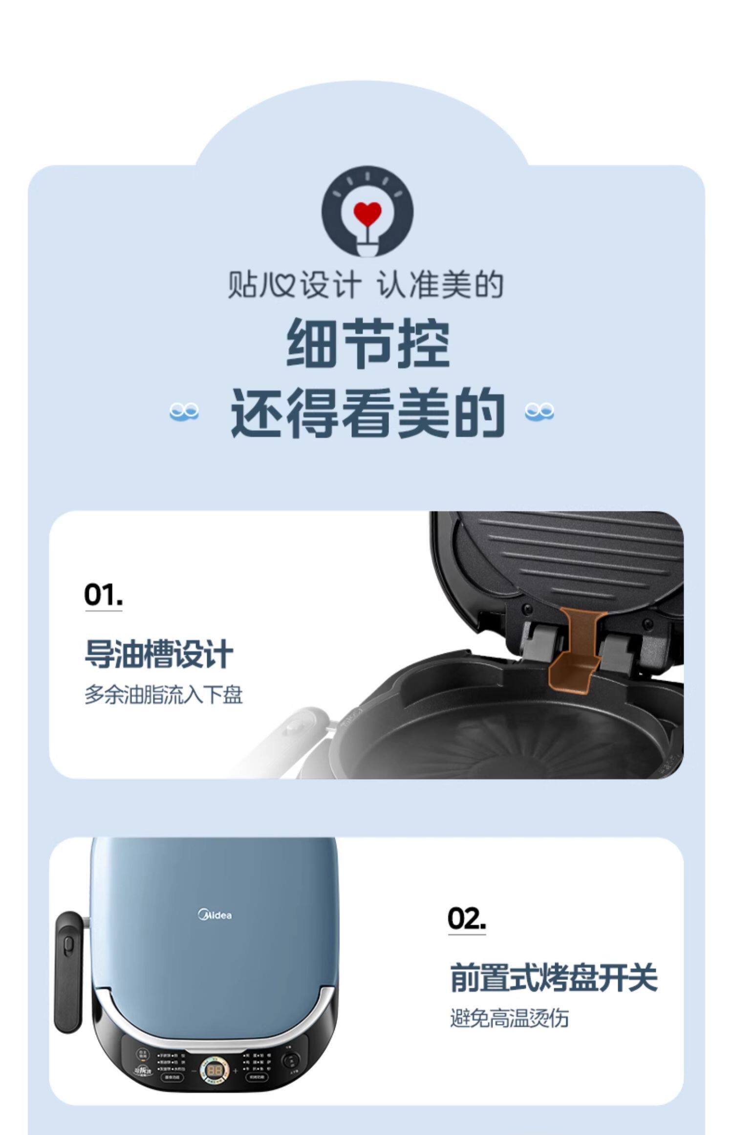 Электрическая сковорода для блинов Midea для бытового двустороннего нагрева, съемная и моющаяся, углубленная и увеличенная, машина для жарки блинов из титановой керамики, новый официальный аутентичный продукт