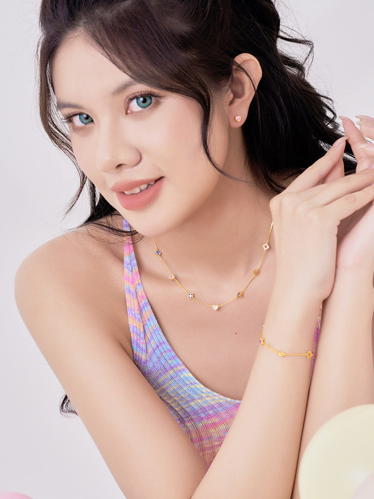 Размер: маленький квадратный цирконий около 0,4 см, персик любви около 0,4 см.