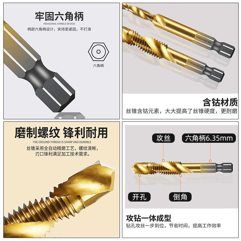Атакуя все -in -in three -in -one -композитный проволочный атака сужает бурение бурения, чтобы атаковать зубное самостоятельное отверстие для винта M3 Silk Attack