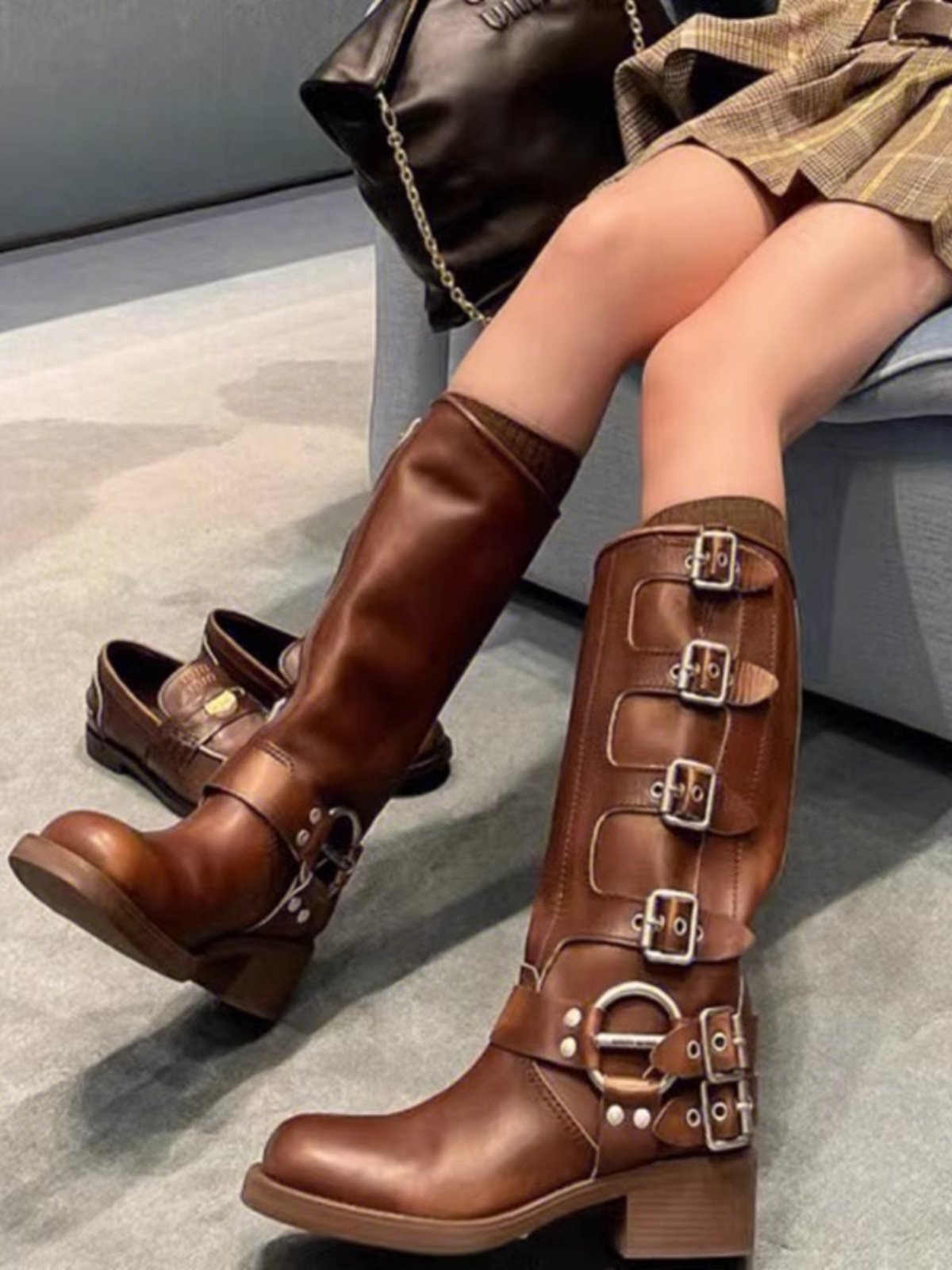 Martens, коричневые джинсовые высокие сапоги в английском стиле, в британском стиле