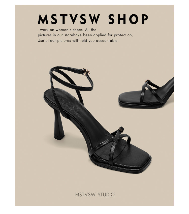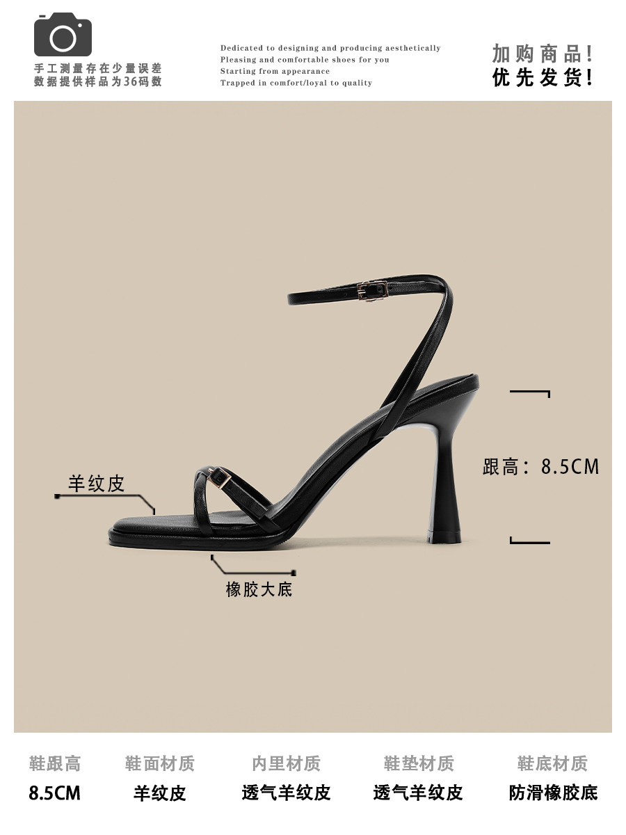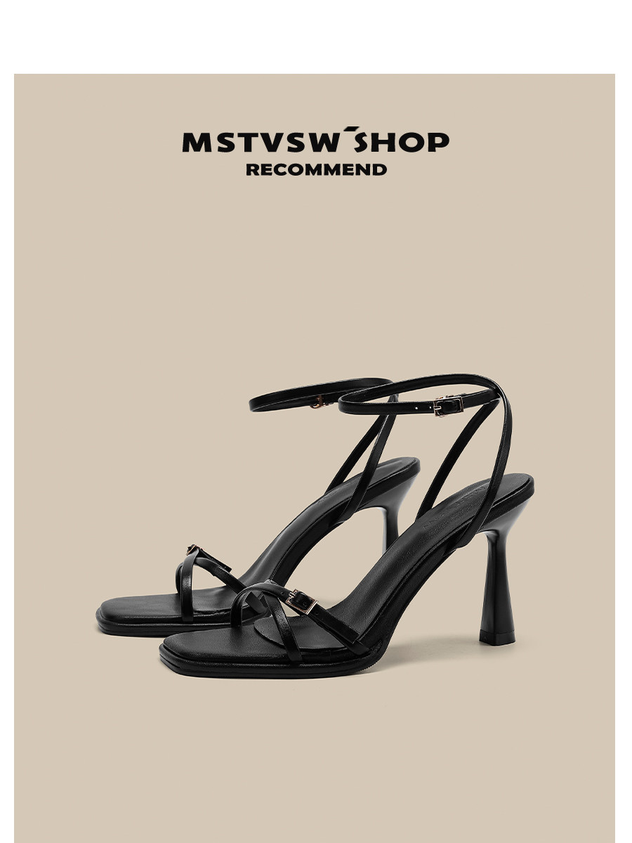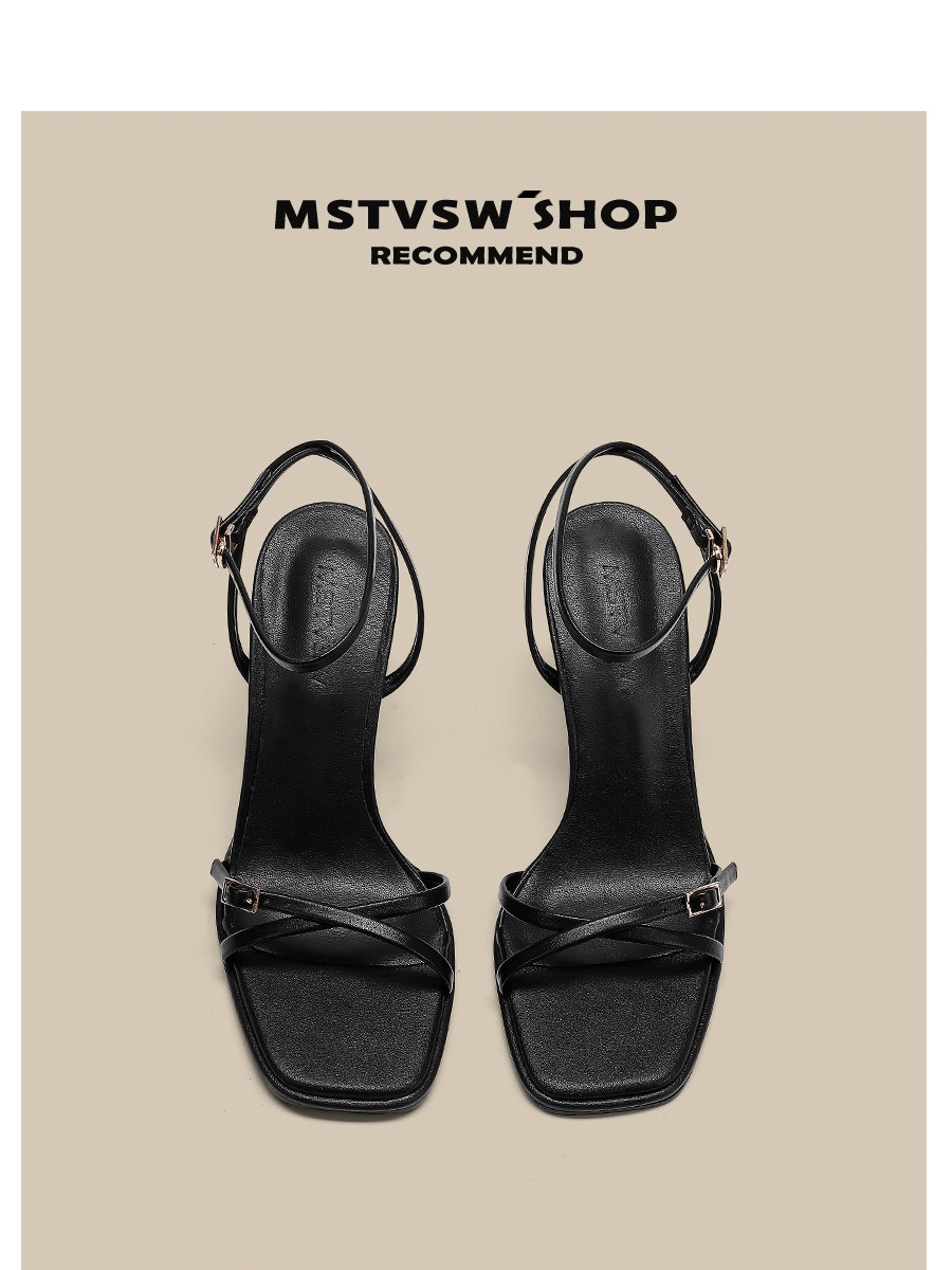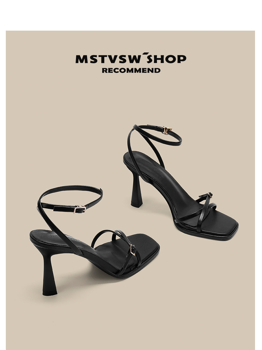 Летние черные универсальные босоножки с ремешком, туфли на высоком каблуке