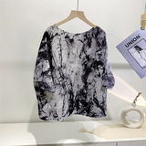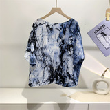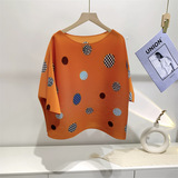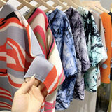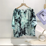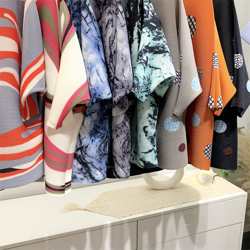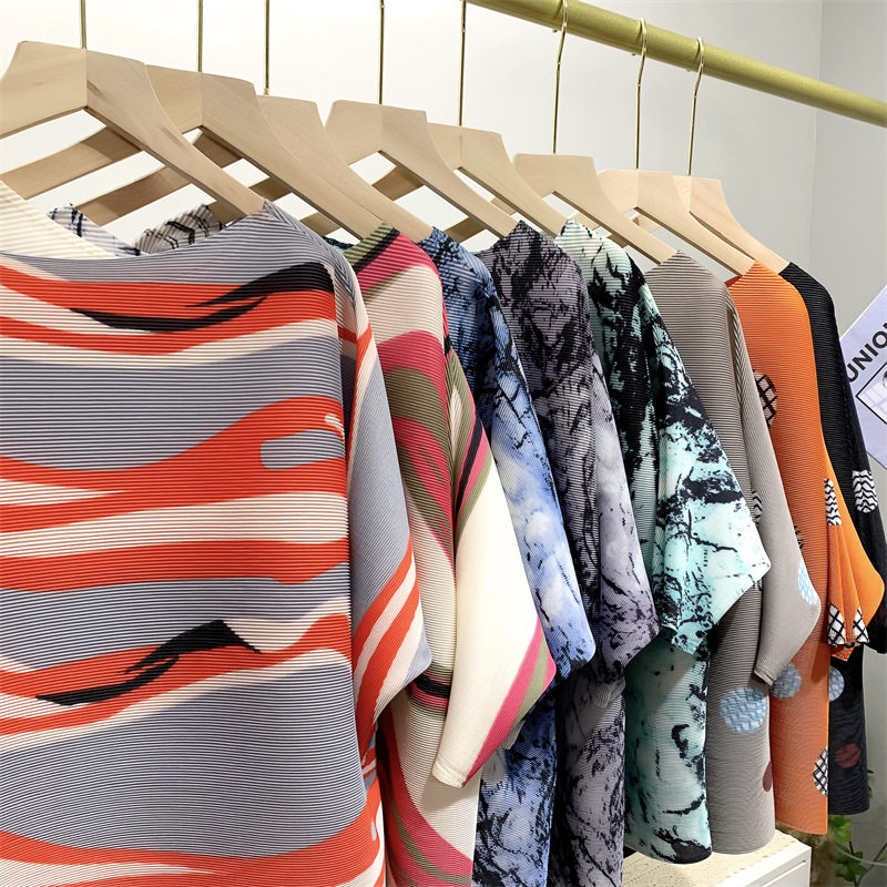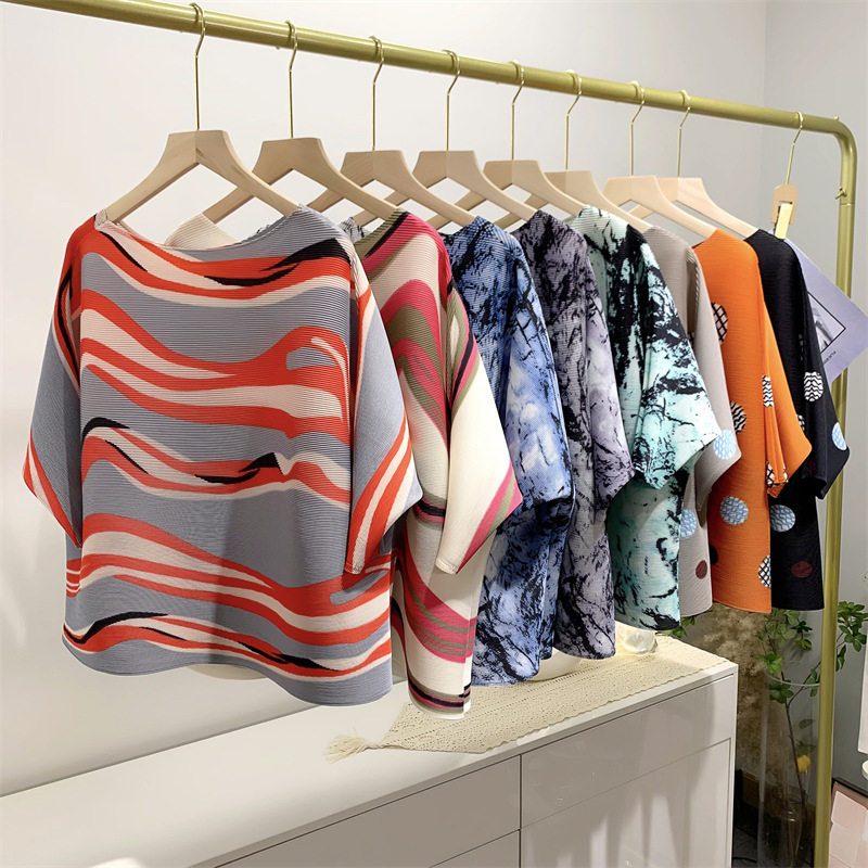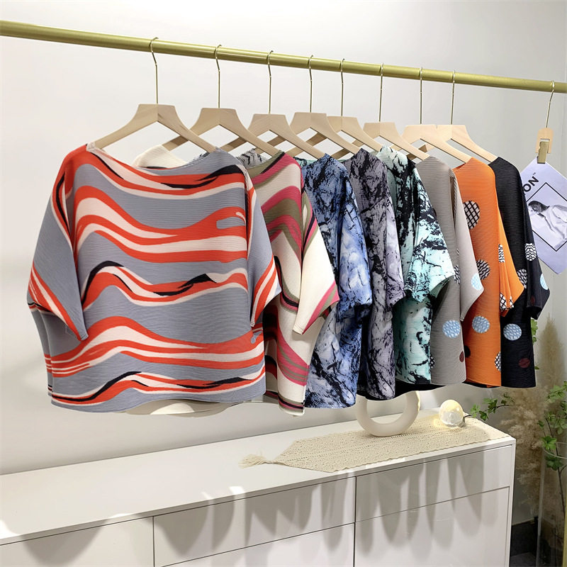 Женская плиссированная верхняя рубашка с принтом и средними рукавами, новинка лета 2024 года, модный стиль, уменьшающая возраст, свободная футболка для мам, один размер подходит всем, для женщин