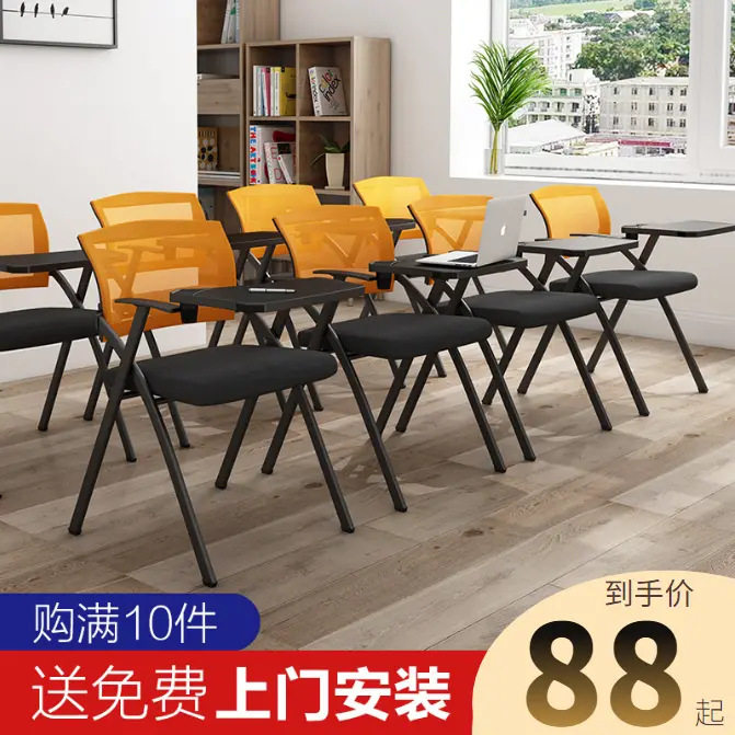 Складное тренировочное кресло с настольным компьютером с письменной панелью для тренировочных комнат.