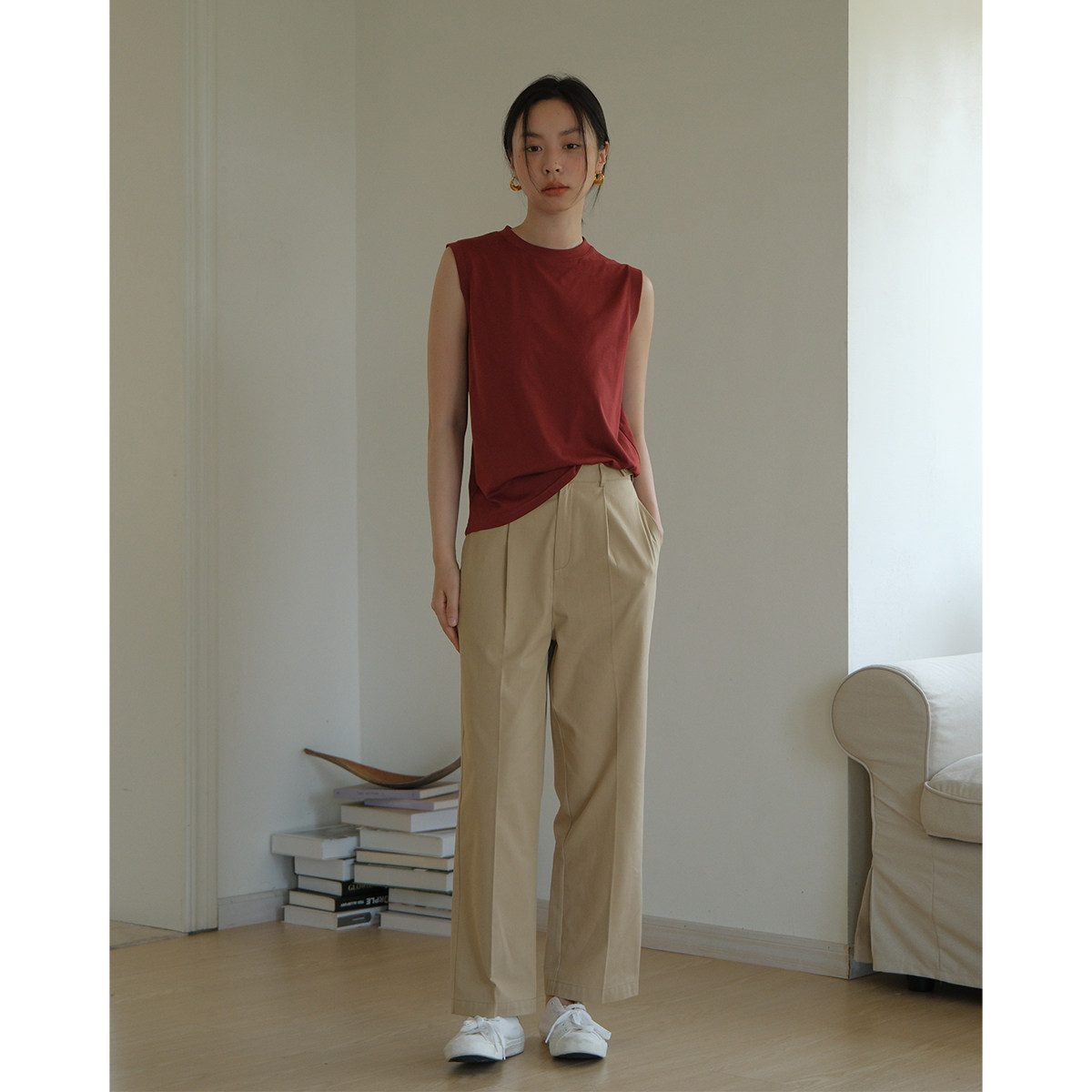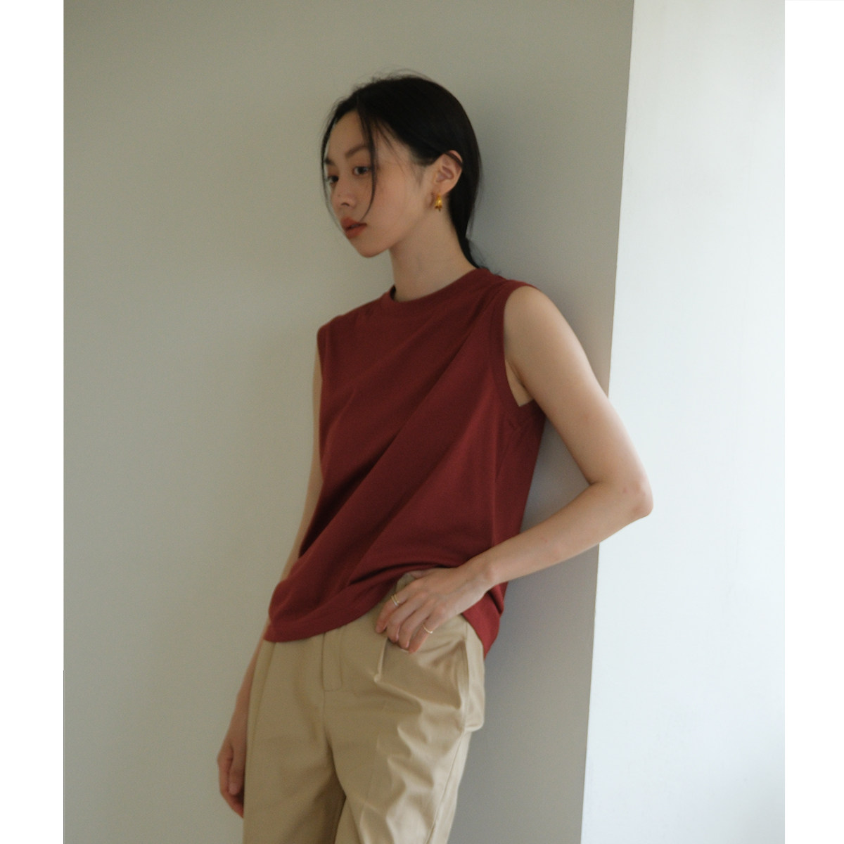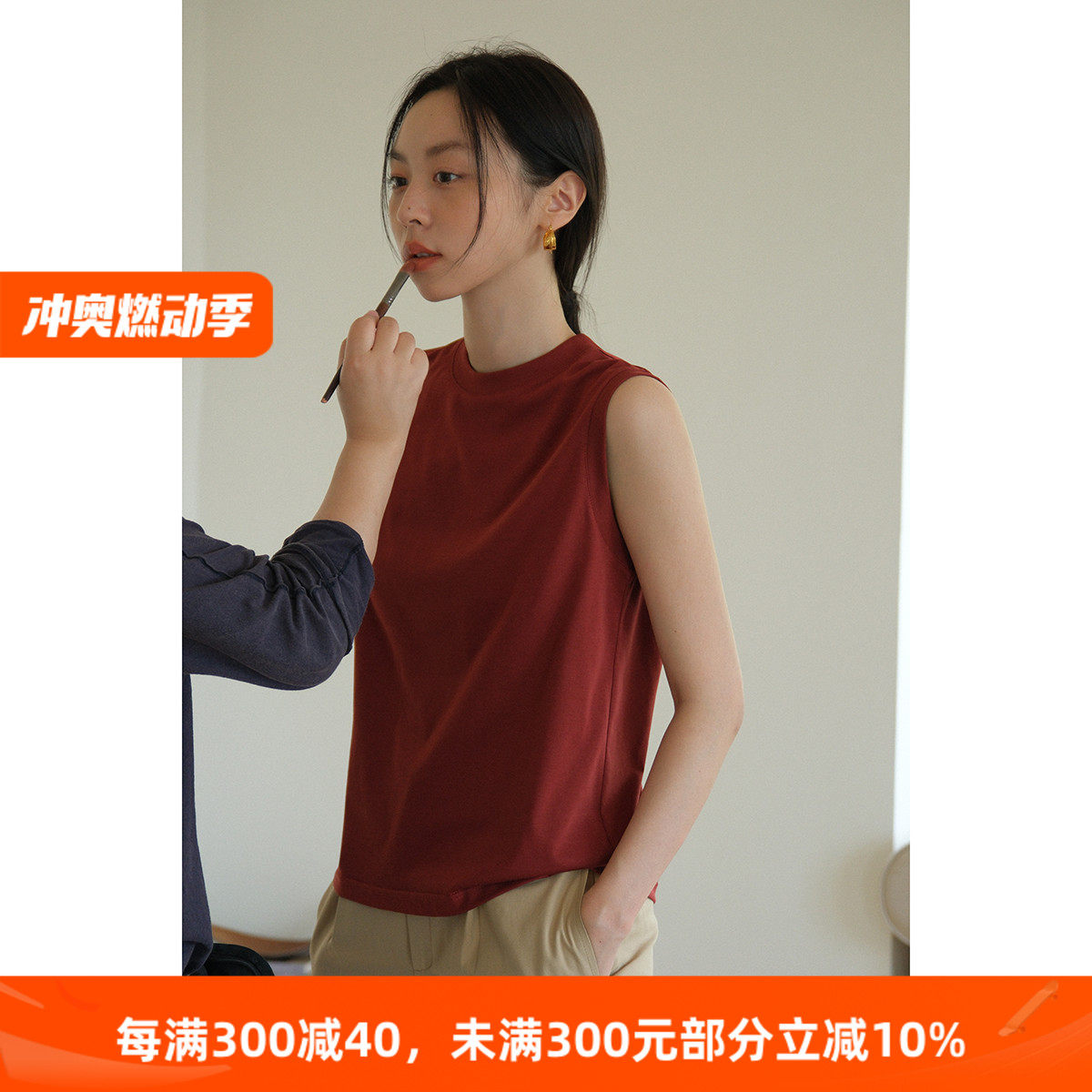 Ретро красная брендовая футболка с круглым воротником без рукавов, жилет, оверсайз