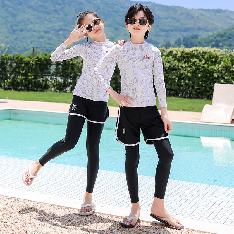 Быстросохнущий купальник, раздельный лонгслив, детские удерживающие тепло комфортные штаны подходит для мужчин и женщин, семейный стиль, защита от солнца, подходит для подростков