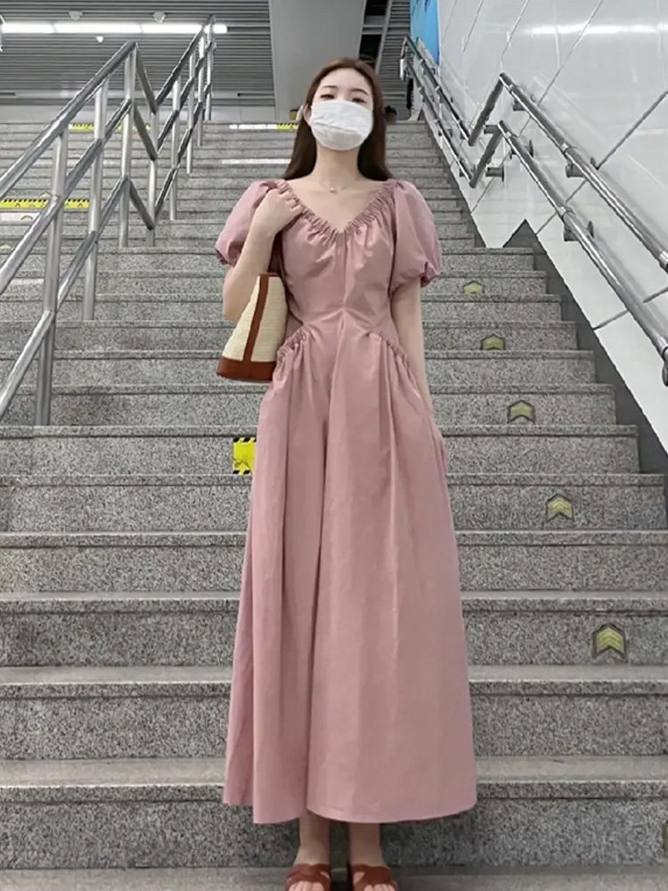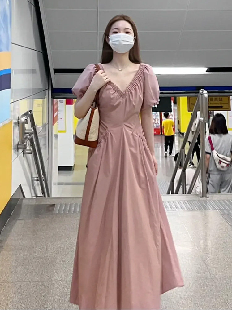 Розовое летнее платье, корсет, длинная юбка, французский стиль, премиум класс