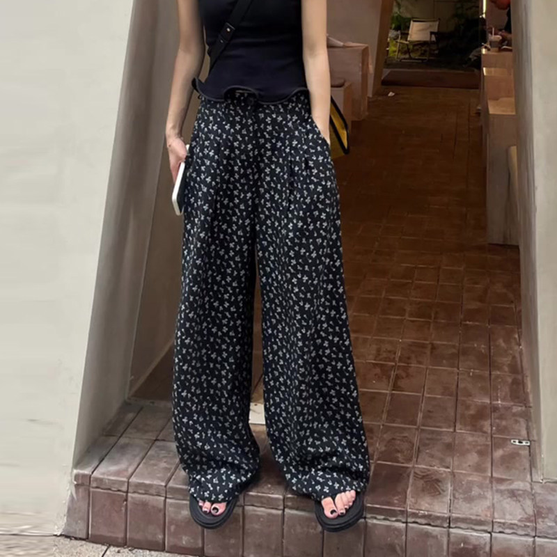 Тонкие весенние штаны для отдыха, цветочный принт, высокая талия, свободный прямой крой