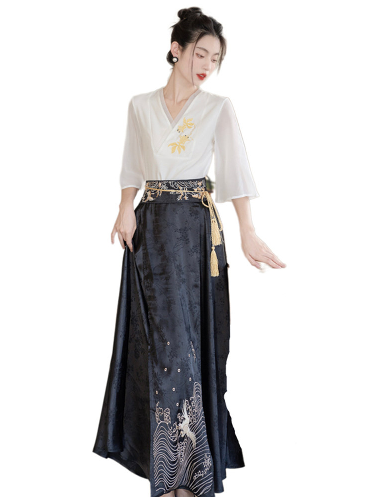 | Цвет: | 9655#Встроенная топ вышивки, 9542#Черная юбка для лапши с лапшой Tistor, Черный комплект, с вышивкой |