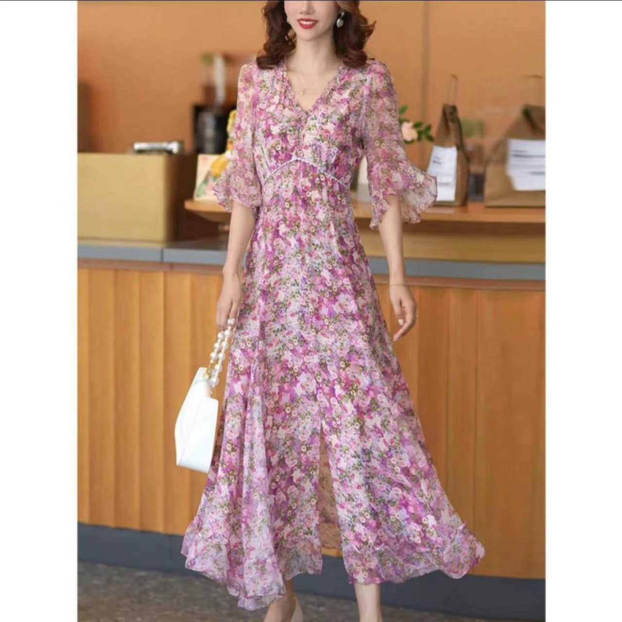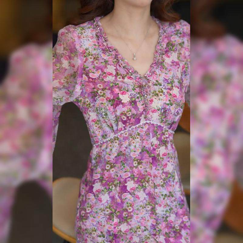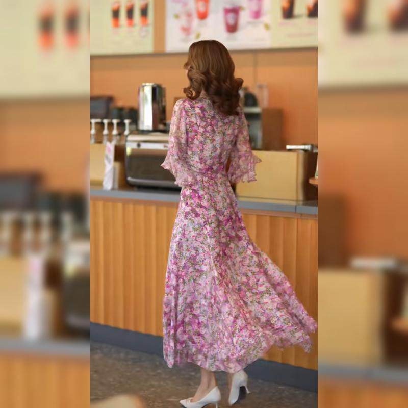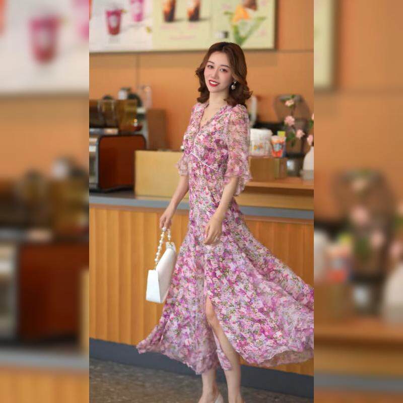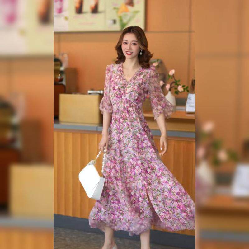 Летнее шифоновое платье, длинная юбка, цветочный принт