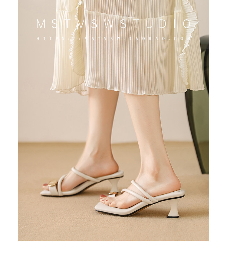 Летние тапочки, металлические туфли на высоком каблуке с ремешком, босоножки