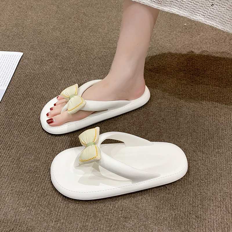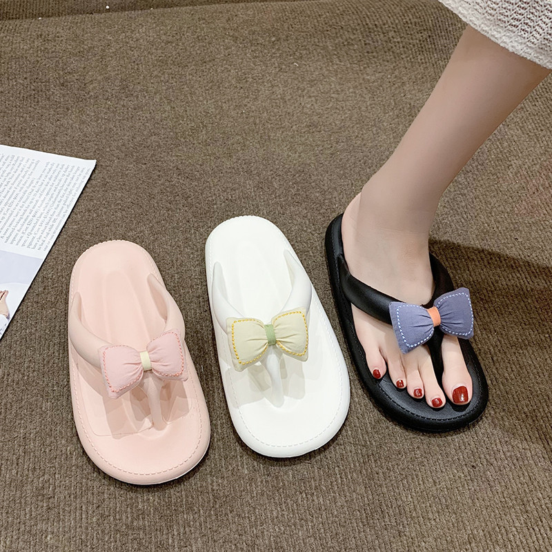 Летние сланцы с бантиком, милые пляжные слайдеры на платформе, тапочки, пляжный стиль
