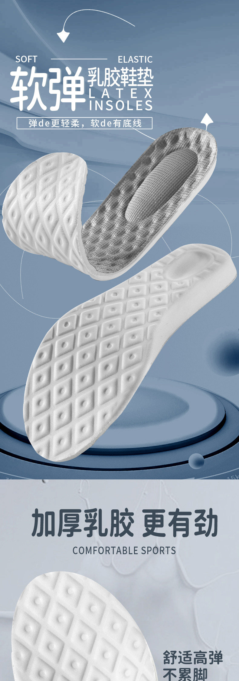Латексные противоболевые спортивные амортизирующие стельки, впитывают пот и запах