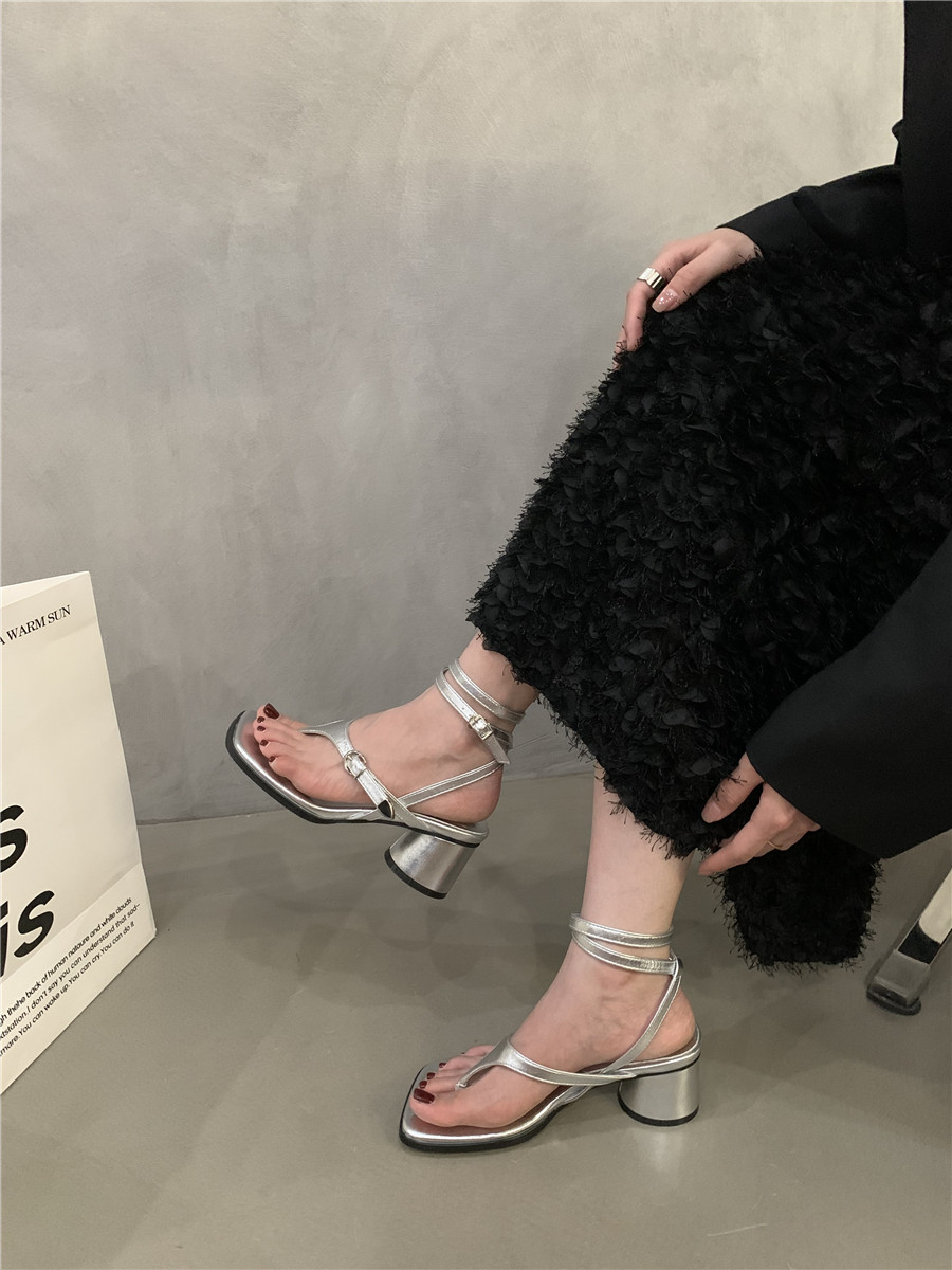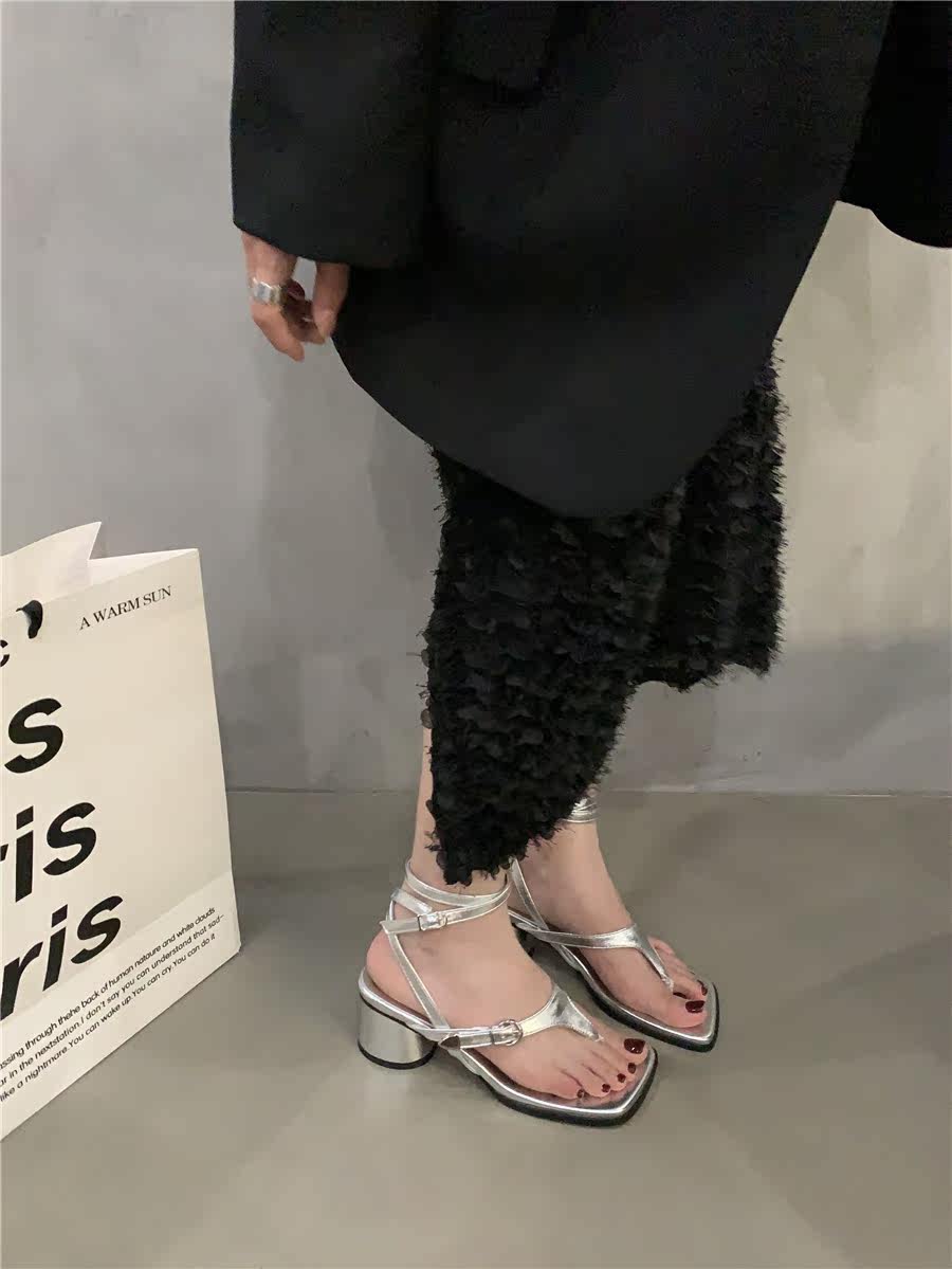 Дизайнерские сандалии, летняя обувь, серебряные модные слайдеры на высоком каблуке, сланцы, французский стиль
