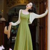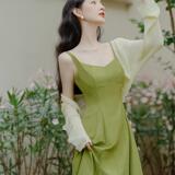 Зеленое платье, комплект, летняя юбка, яркий броский стиль, изысканный стиль